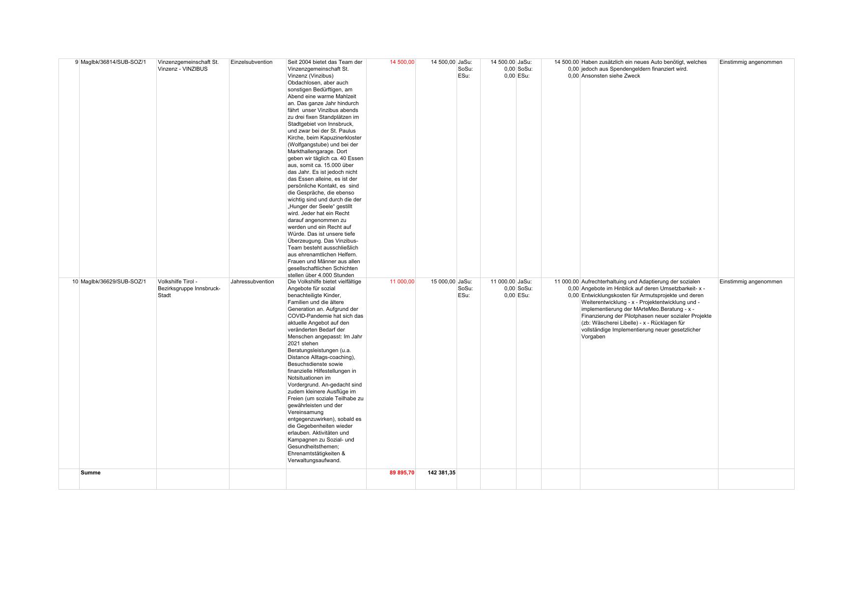 11 000.00 Aufrechterhaltuing und Adaptierung der sozialen