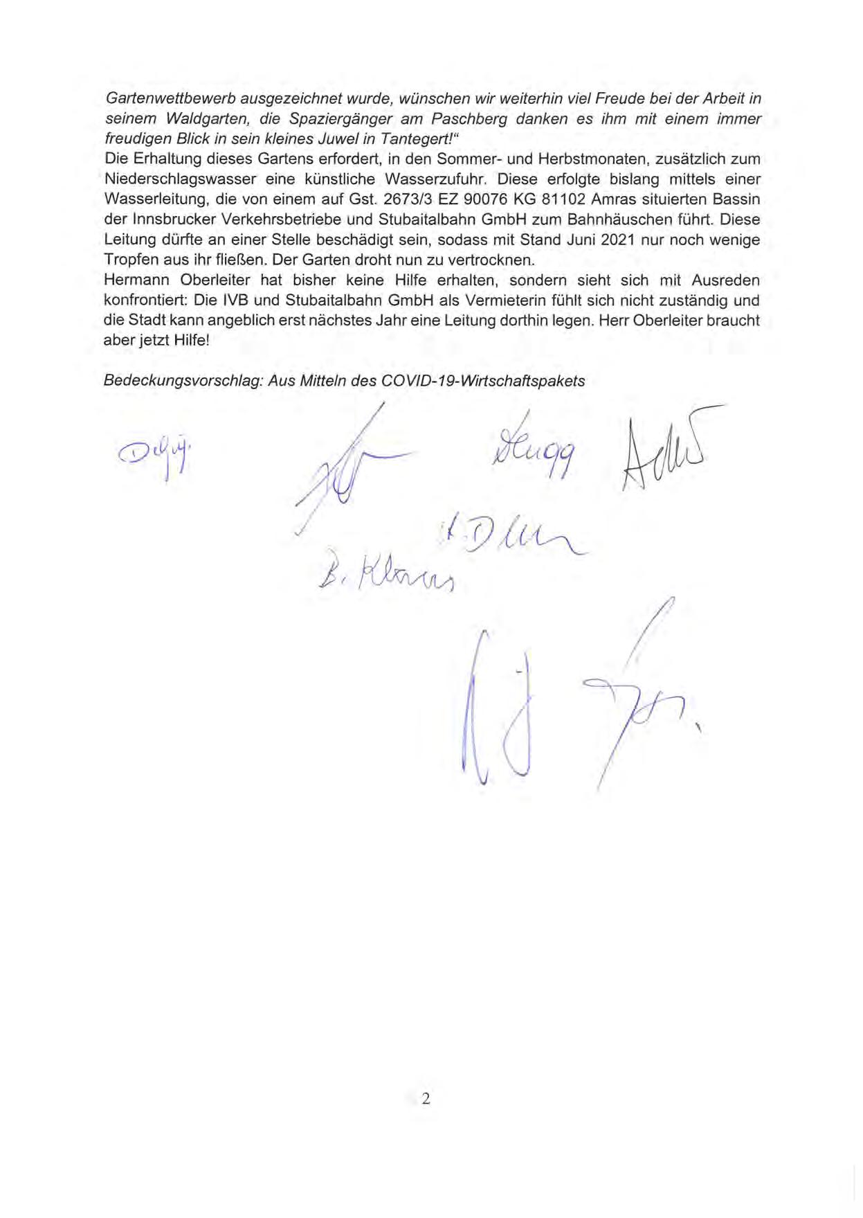 Bedeckungsvorschlag: Aus Mitteln des COVID-19-Wirtschaftspakets
