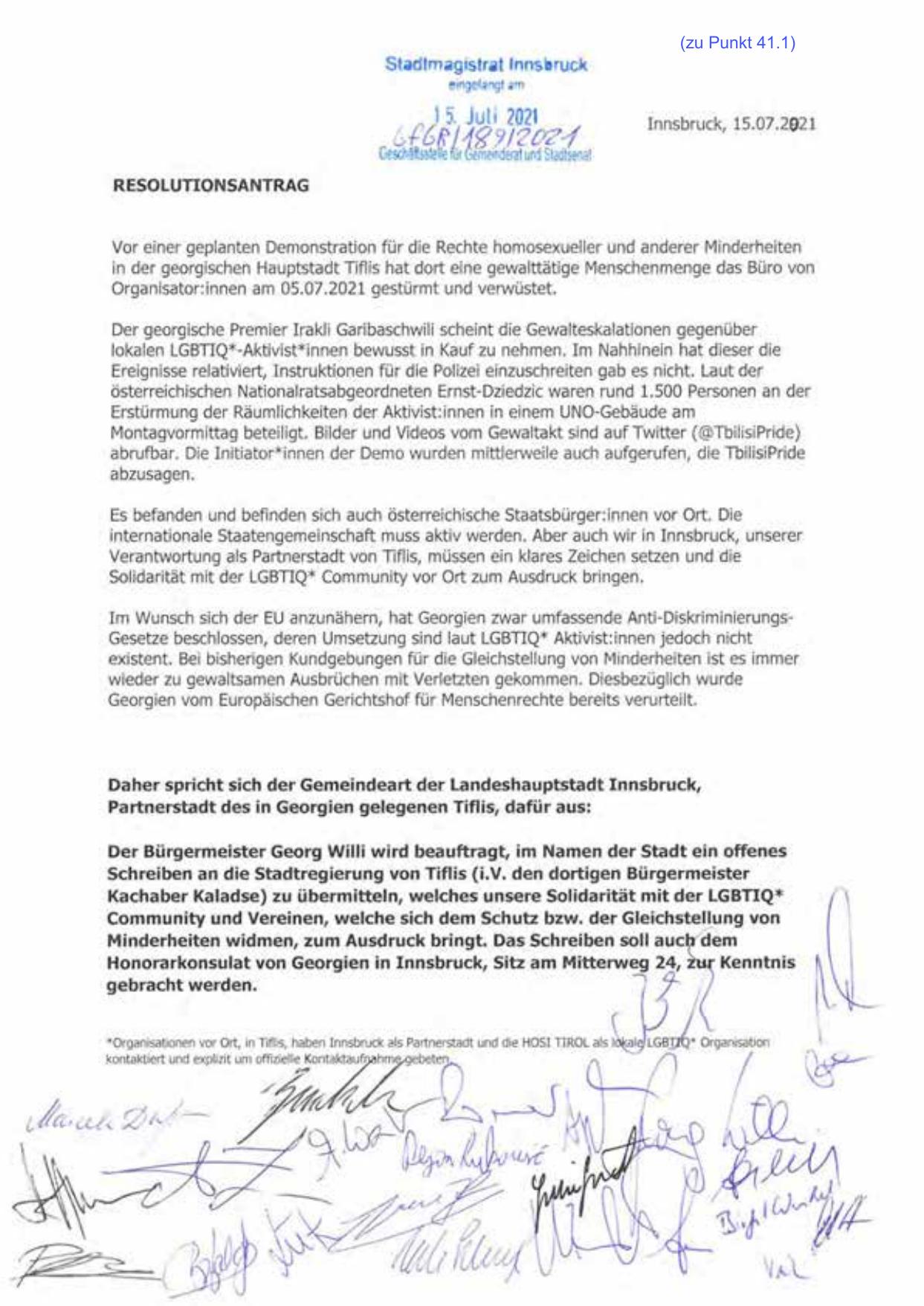 Daher spricht sich der Gemeindeart der Landeshauptstadt Innsbruck,