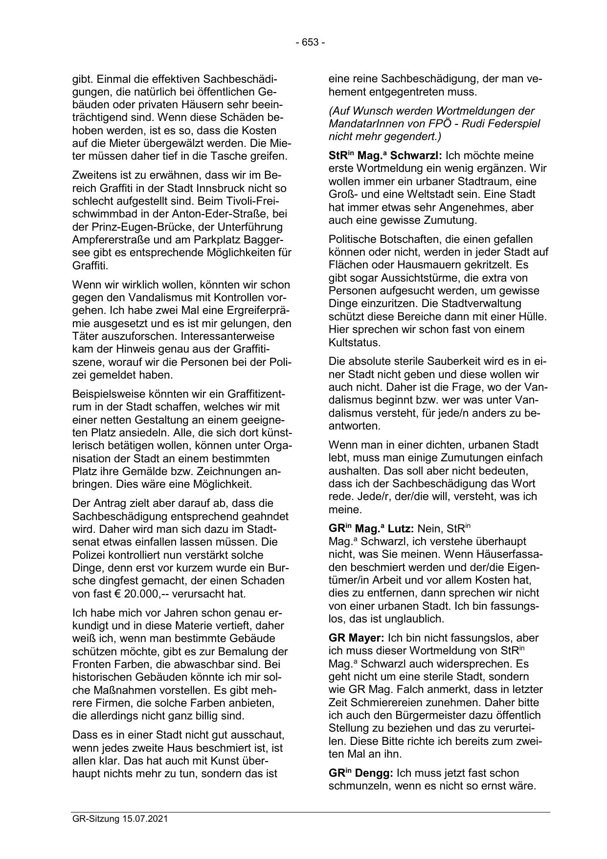 Zweitens ist zu erwähnen, dass wir im Bereich Graffiti in der Stadt Innsbruck nicht so