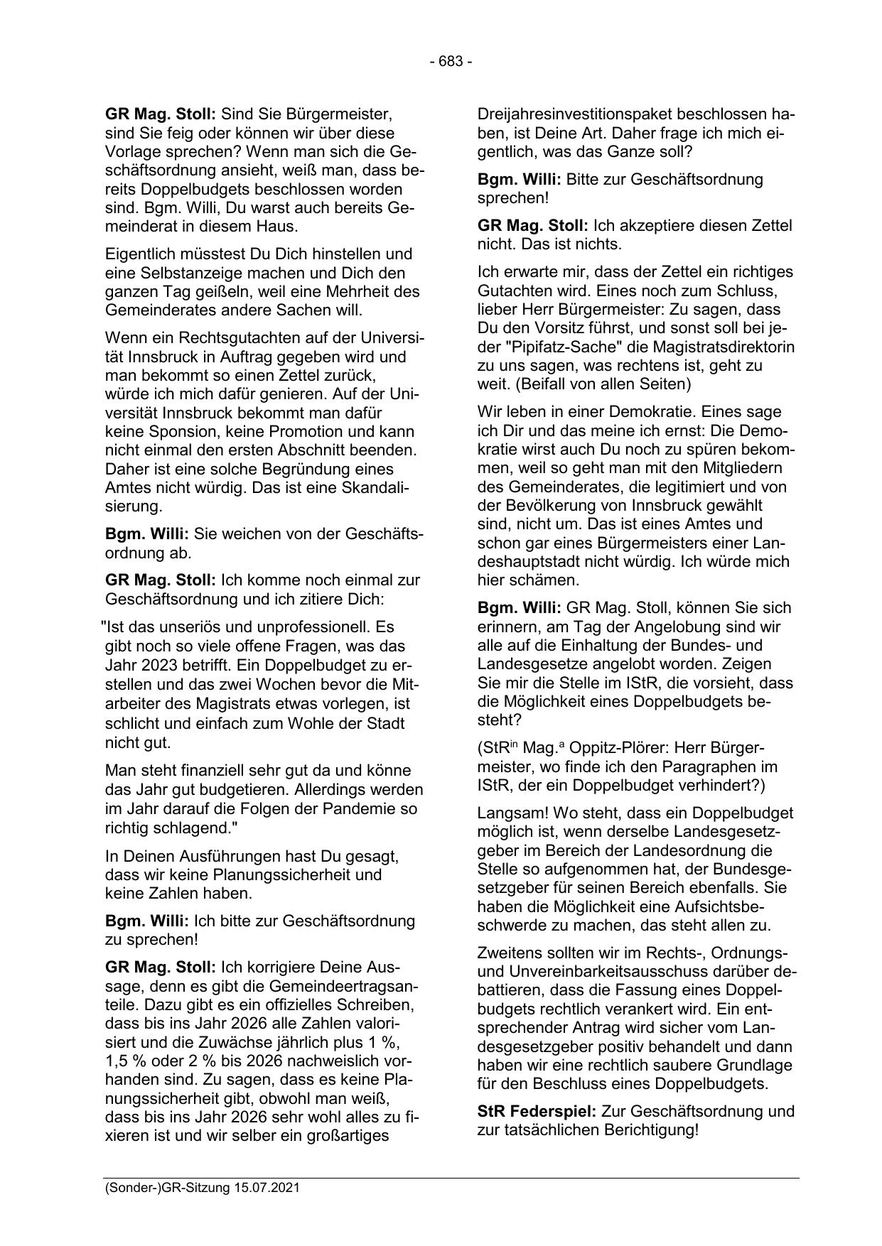 Bgm. Willi: Ich bitte zur Geschäftsordnung