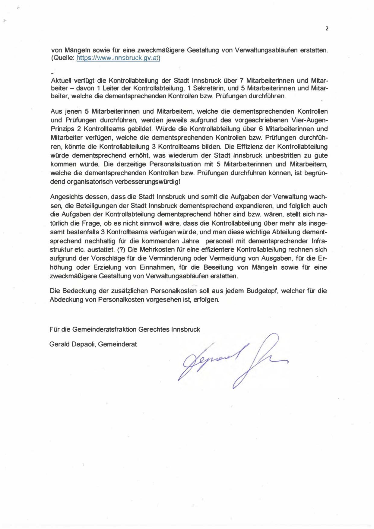 Aktuell verfügt die Kontrollabteilung der Stadt Innsbruck über 7 Mitarbeiterinnen u nd Mitar­