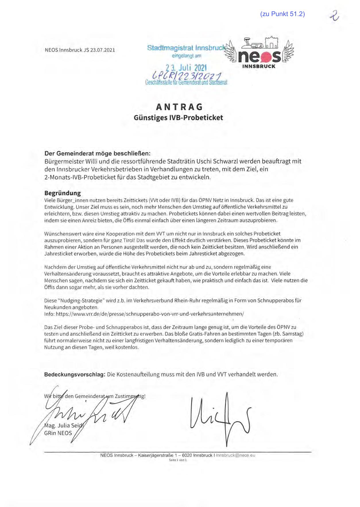 den lnnsbrucker Verkehrsbetrieben in Verhandlungen zu treten, mit dem Ziel, ein