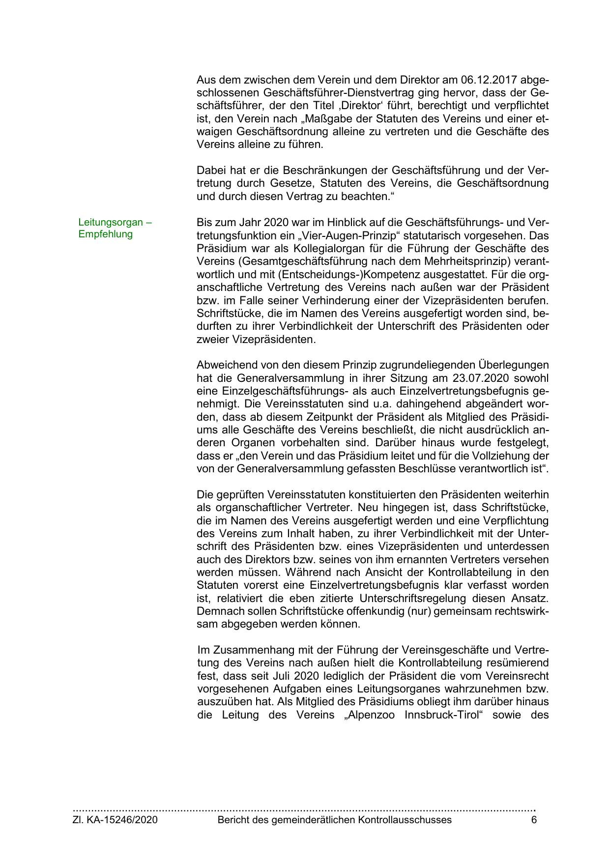 Bis zum Jahr 2020 war im Hinblick auf die Geschäftsführungs- und Vertretungsfunktion ein „Vier-Augen-Prinzip“ statutarisch vorgesehen. Das