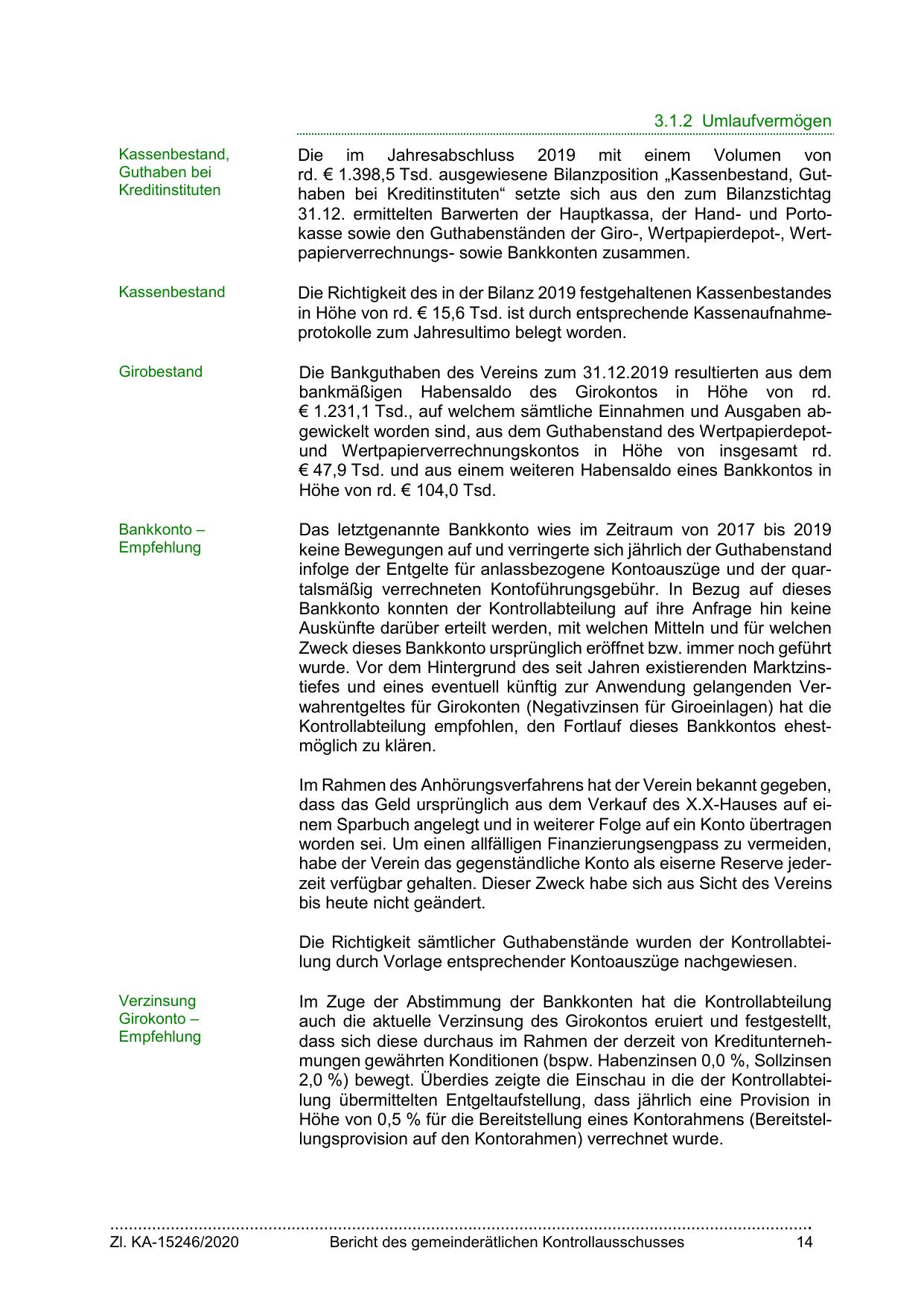 Die Richtigkeit sämtlicher Guthabenstände wurden der Kontrollabteilung durch Vorlage entsprechender Kontoauszüge nachgewiesen.