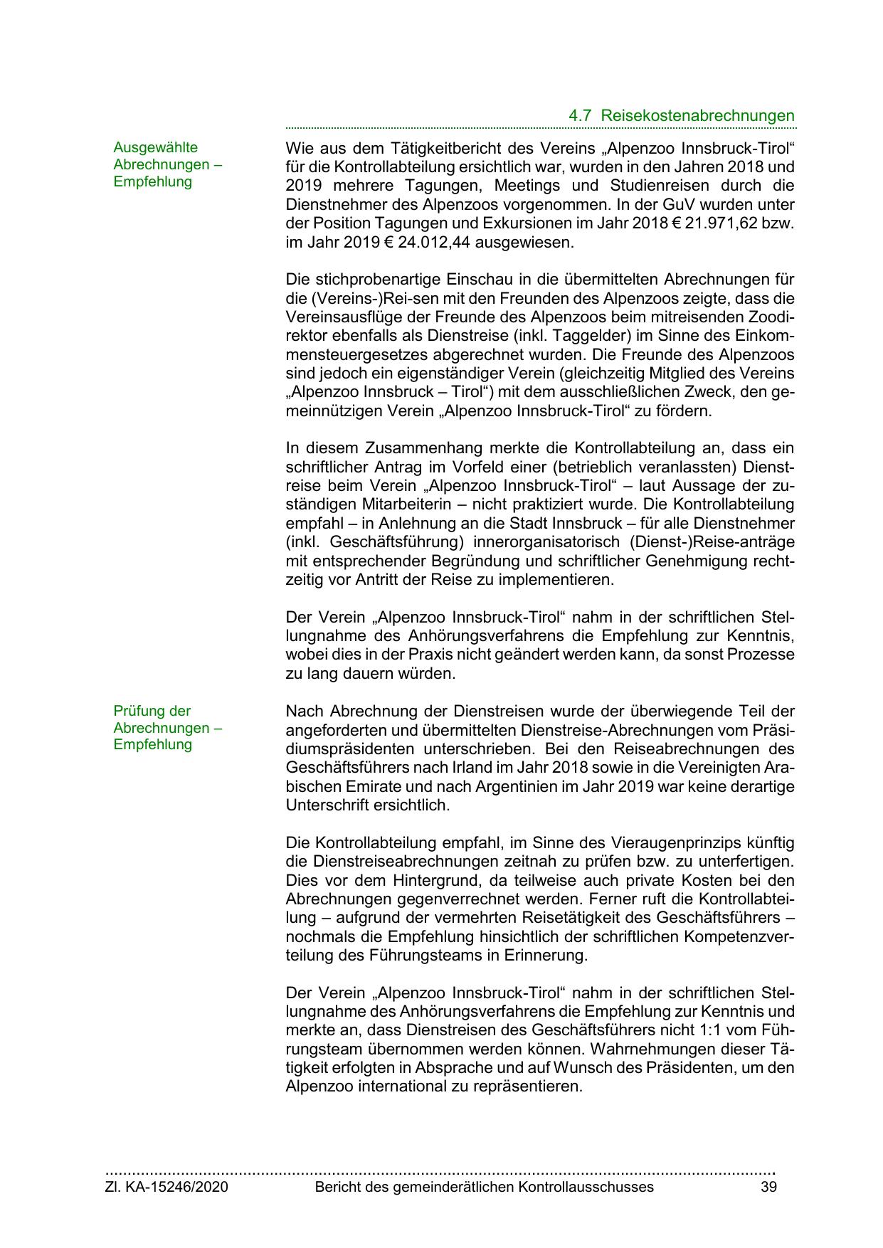 schriftlicher Antrag im Vorfeld einer (betrieblich veranlassten) Dienstreise beim Verein „Alpenzoo Innsbruck-Tirol“ – laut Aussage der zuständigen Mitarbeiterin – nicht praktiziert wurde. Die Kontrollabteilung
