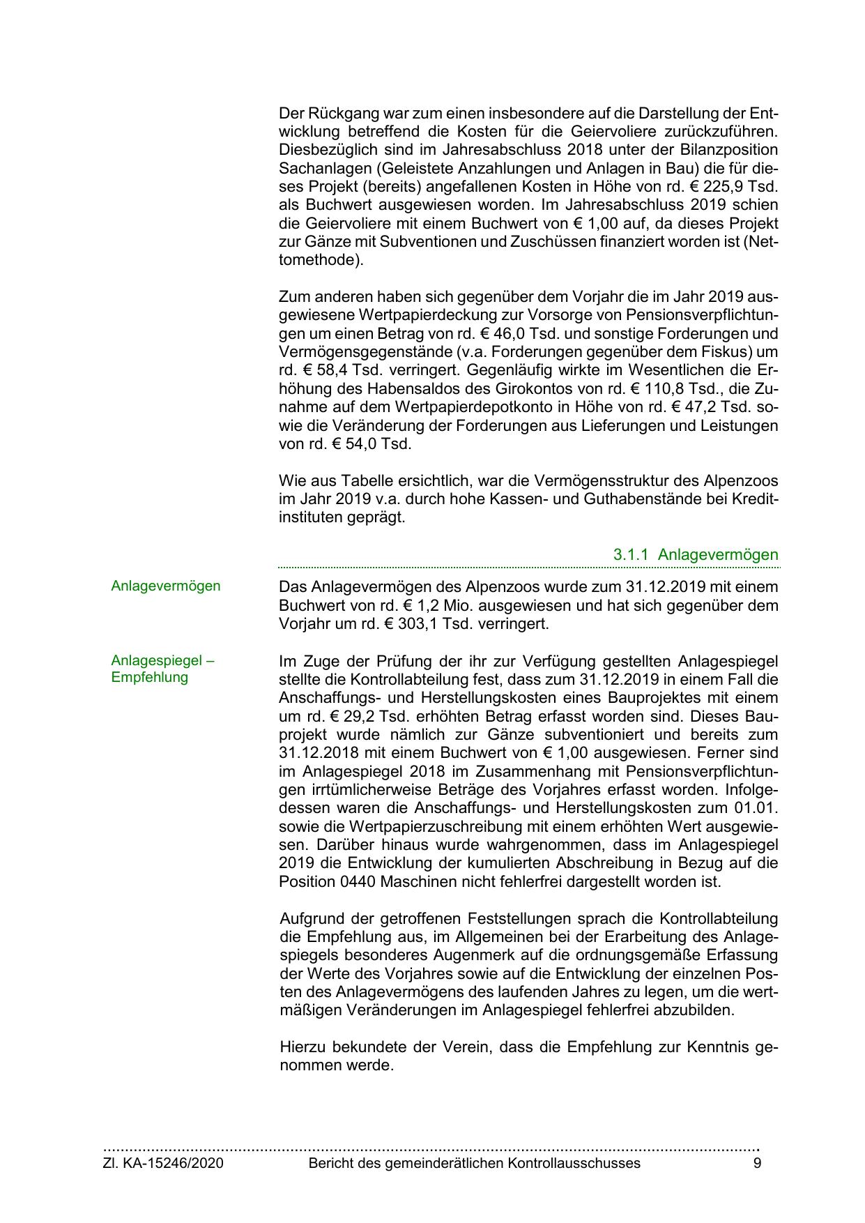 Das Anlagevermögen des Alpenzoos wurde zum 31.12.2019 mit einem