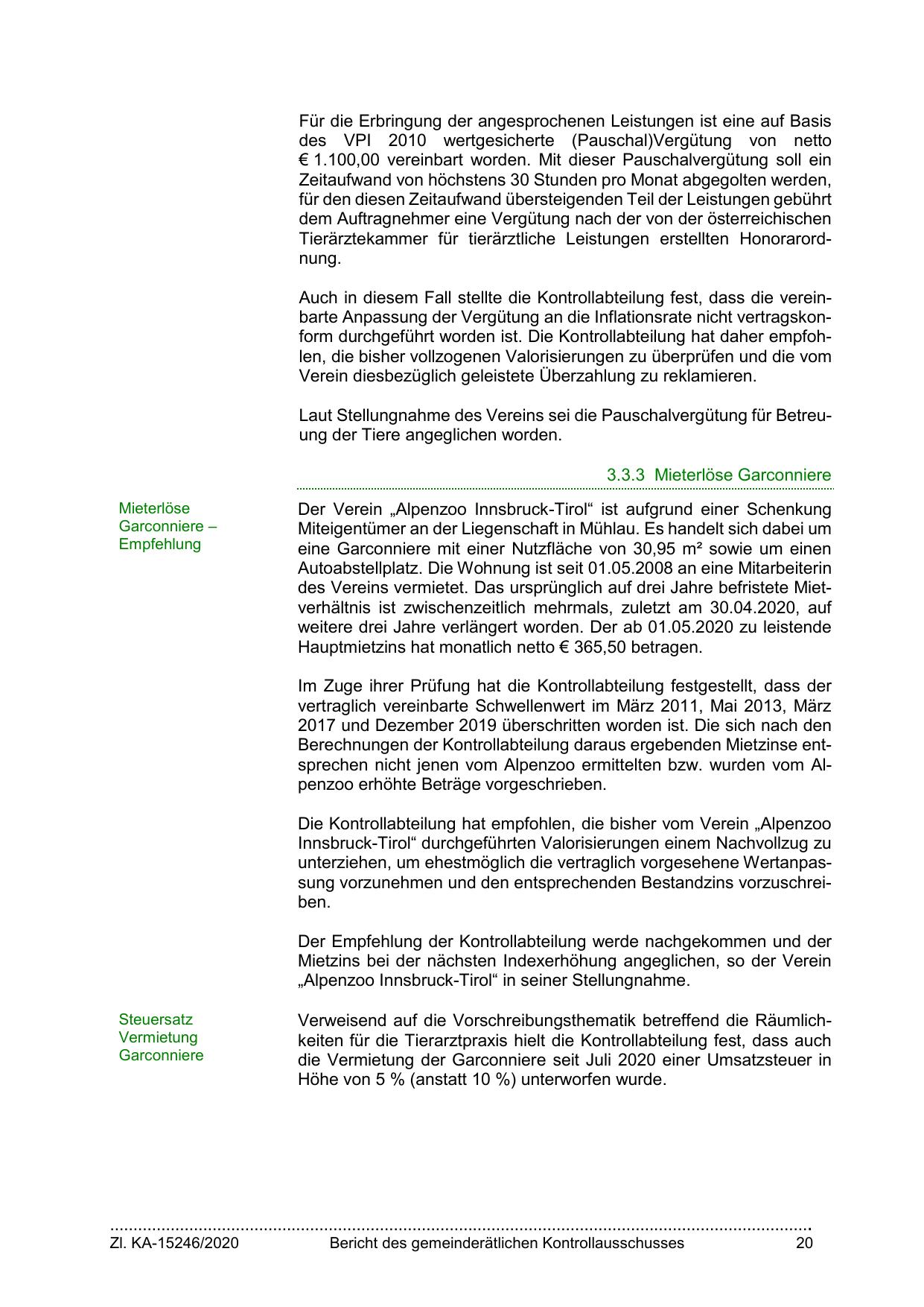 Berechnungen der Kontrollabteilung daraus ergebenden Mietzinse entsprechen nicht jenen vom Alpenzoo ermittelten bzw. wurden vom Alpenzoo erhöhte Beträge vorgeschrieben.
