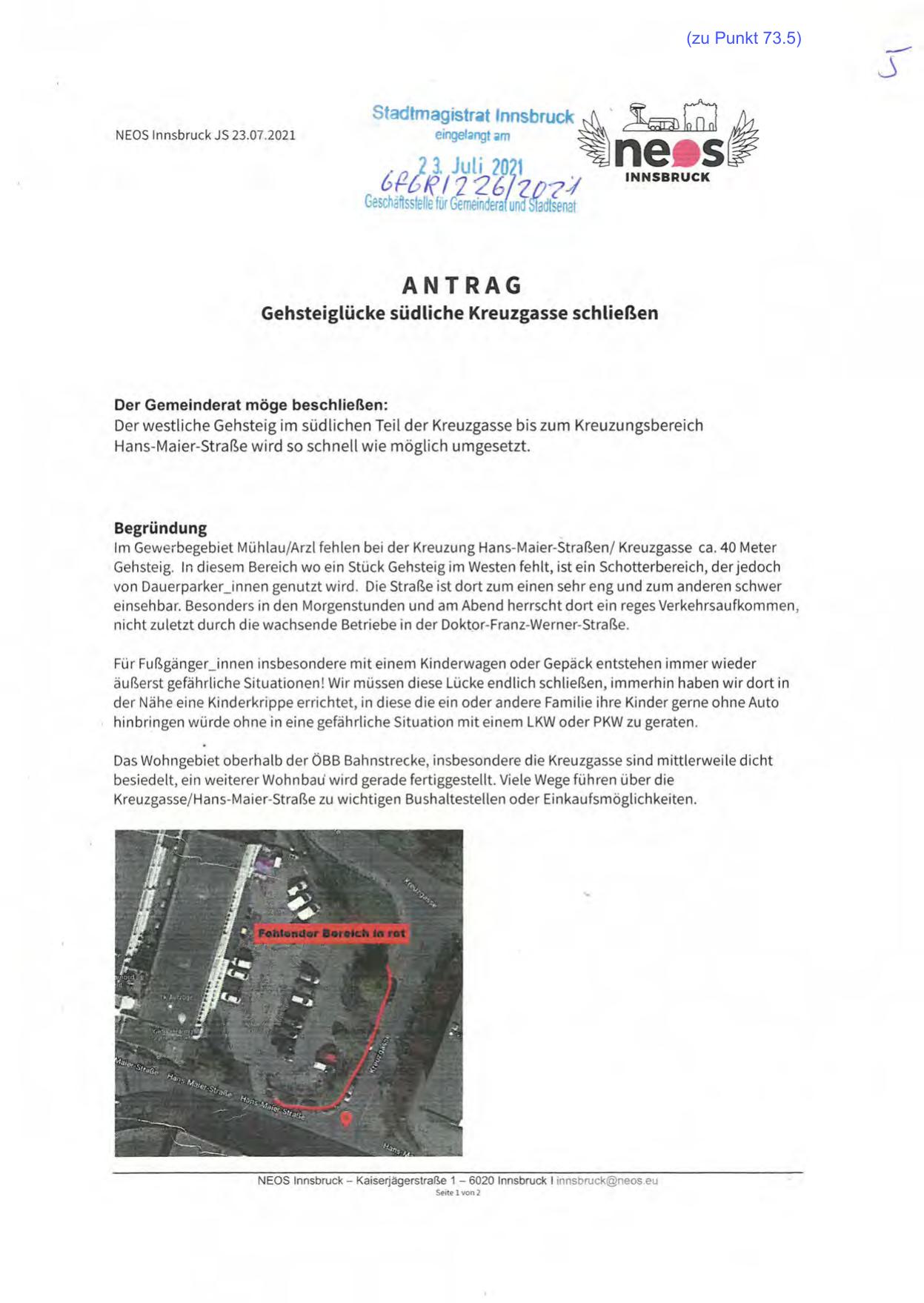 Im Gewerbegebiet Mühlau/Arzl fehlen bei der Kreuzung Hans-Maier-Straßen/ Kreuzgasse ca . 40 Meter