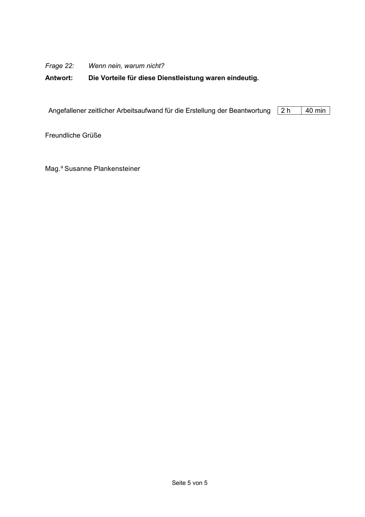 Angefallener zeitlicher Arbeitsaufwand für die Erstellung der Beantwortung