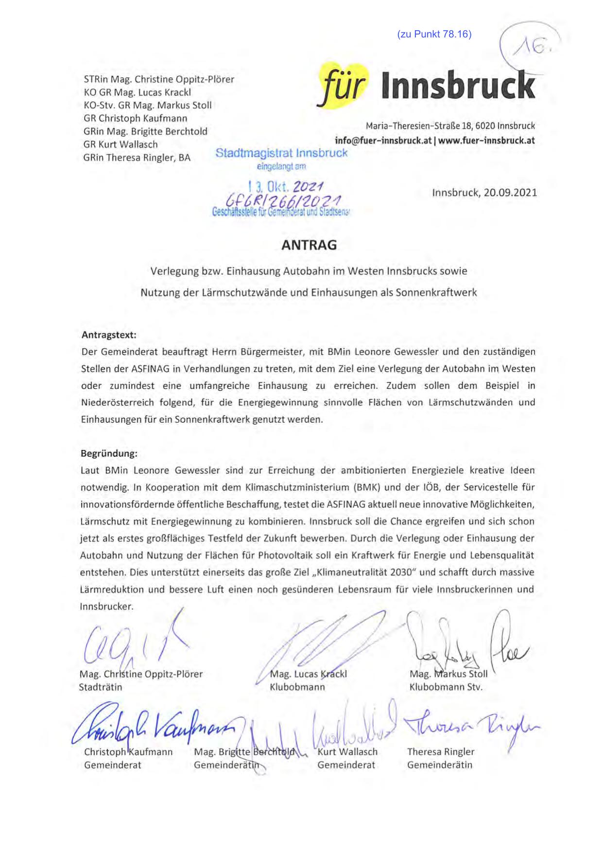 Der Gemeinderat beauftragt Herrn Bürgermeister, mit BMin Leonore Gewessler und den zuständigen