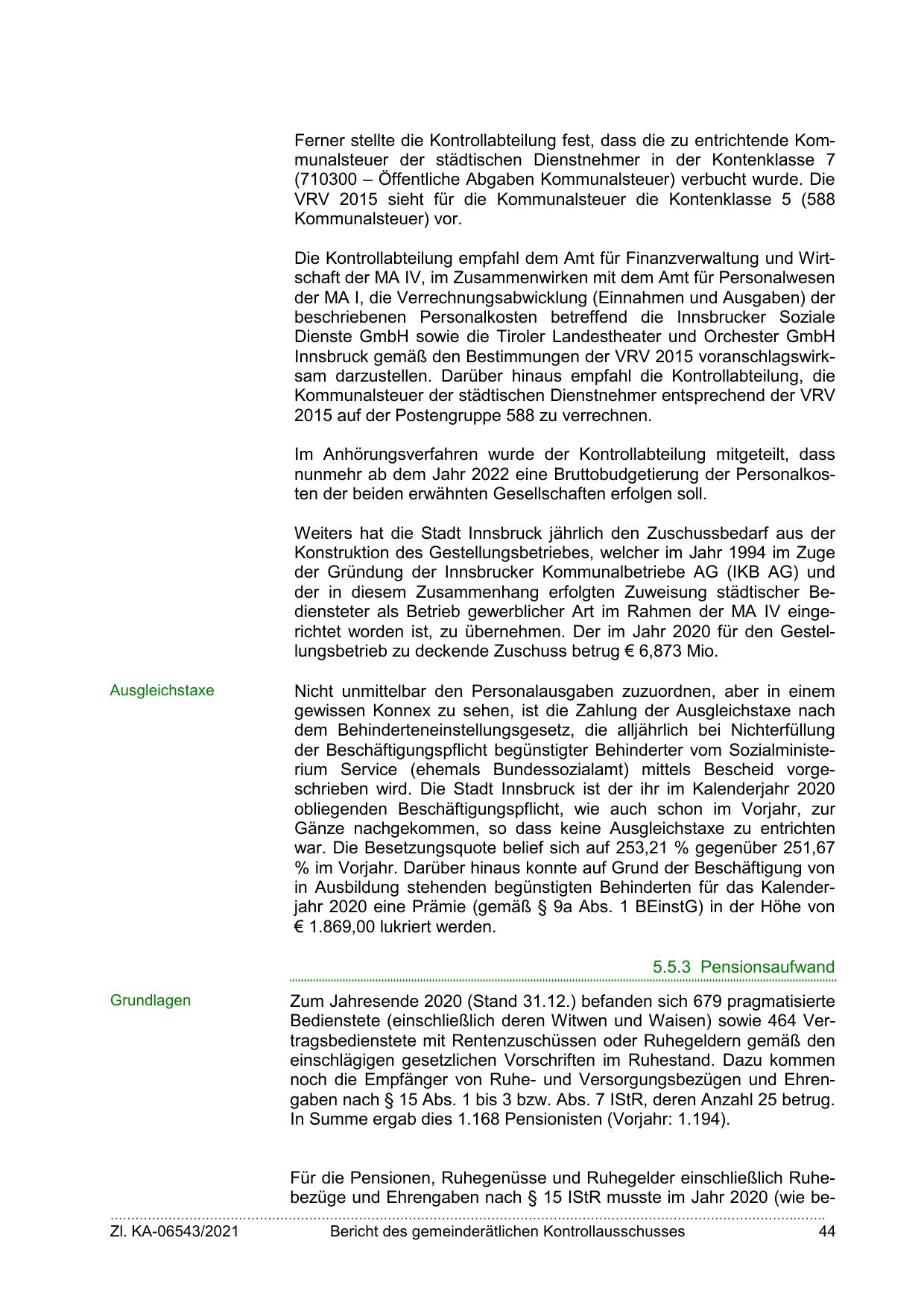 Ferner stellte die Kontrollabteilung fest, dass die zu entrichtende Kommunalsteuer der städtischen Dienstnehmer in der Kontenklasse 7