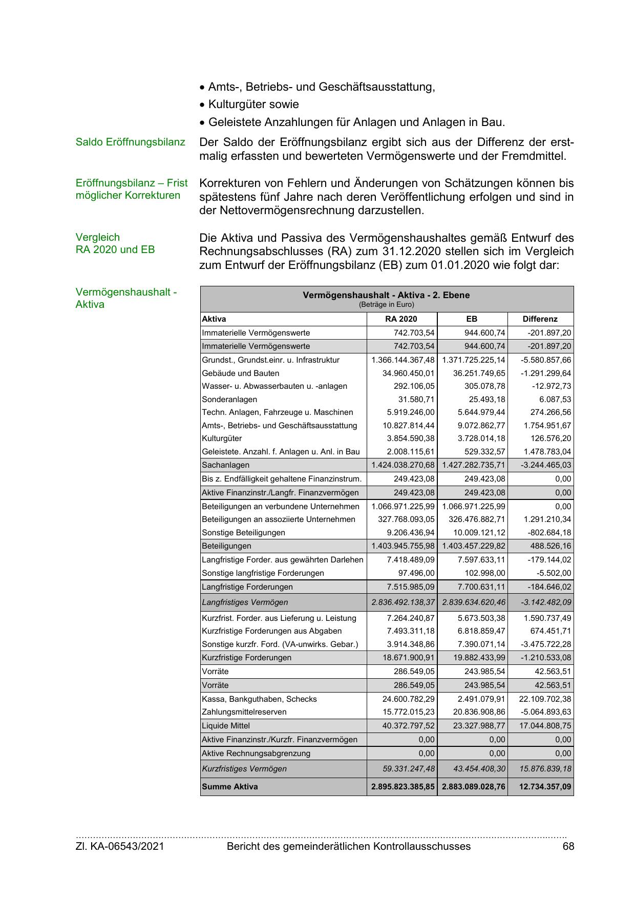 zum Entwurf der Eröffnungsbilanz (EB) zum 01.01.2020 wie folgt dar: