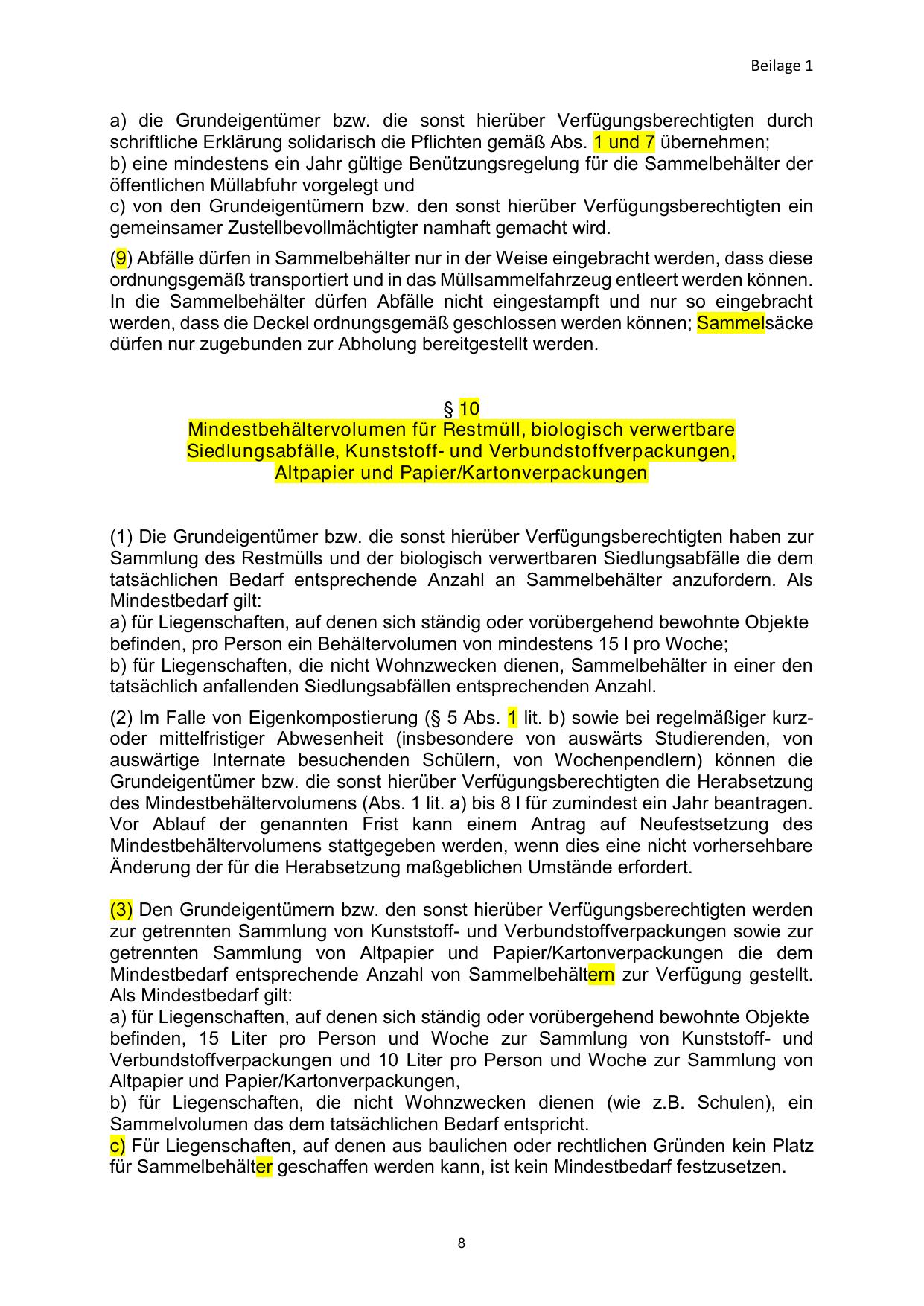 des Mindestbehältervolumens (Abs. 1 lit. a) bis 8 l für zumindest ein Jahr beantragen.