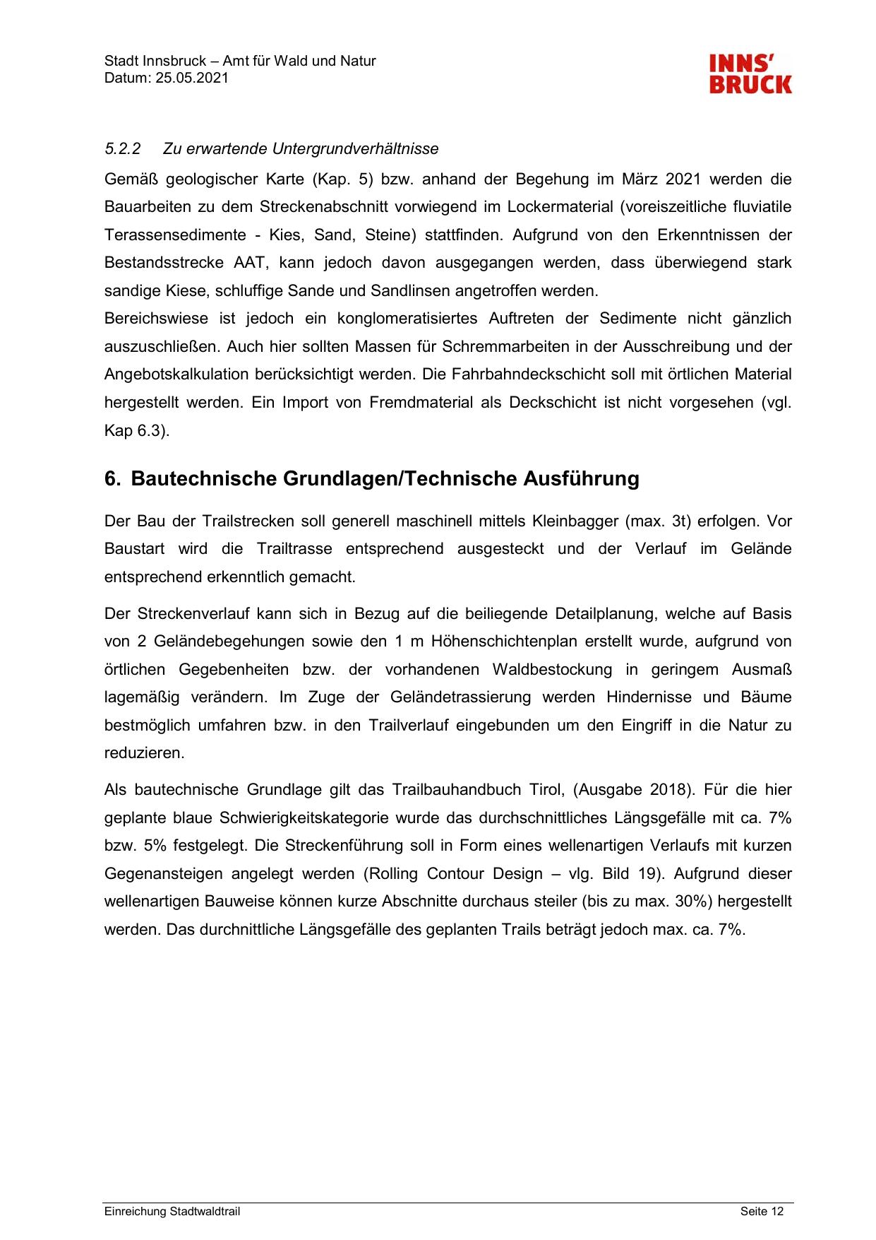 Als bautechnische Grundlage gilt das Trailbauhandbuch Tirol, (Ausgabe 2018). Für die hier