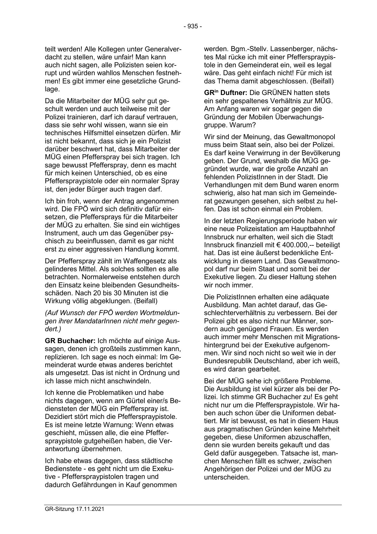 werden. Bgm.-Stellv. Lassenberger, nächstes Mal rücke ich mit einer Pfefferspraypistole in den Gemeinderat ein, weil es legal