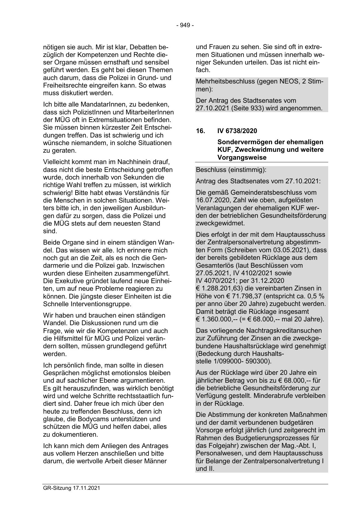 Mehrheitsbeschluss (gegen NEOS, 2 Stimmen):