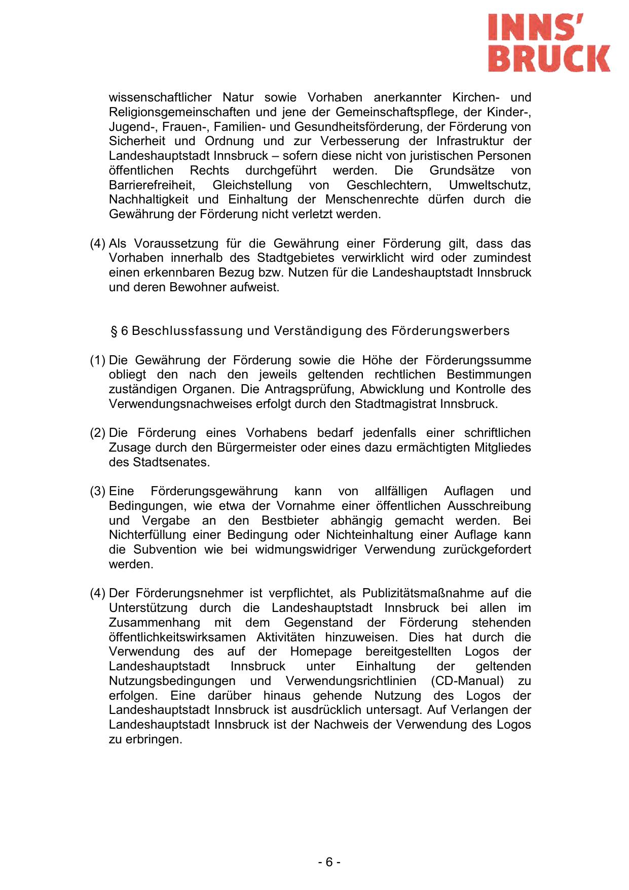 Verwendungsnachweises erfolgt durch den Stadtmagistrat Innsbruck.