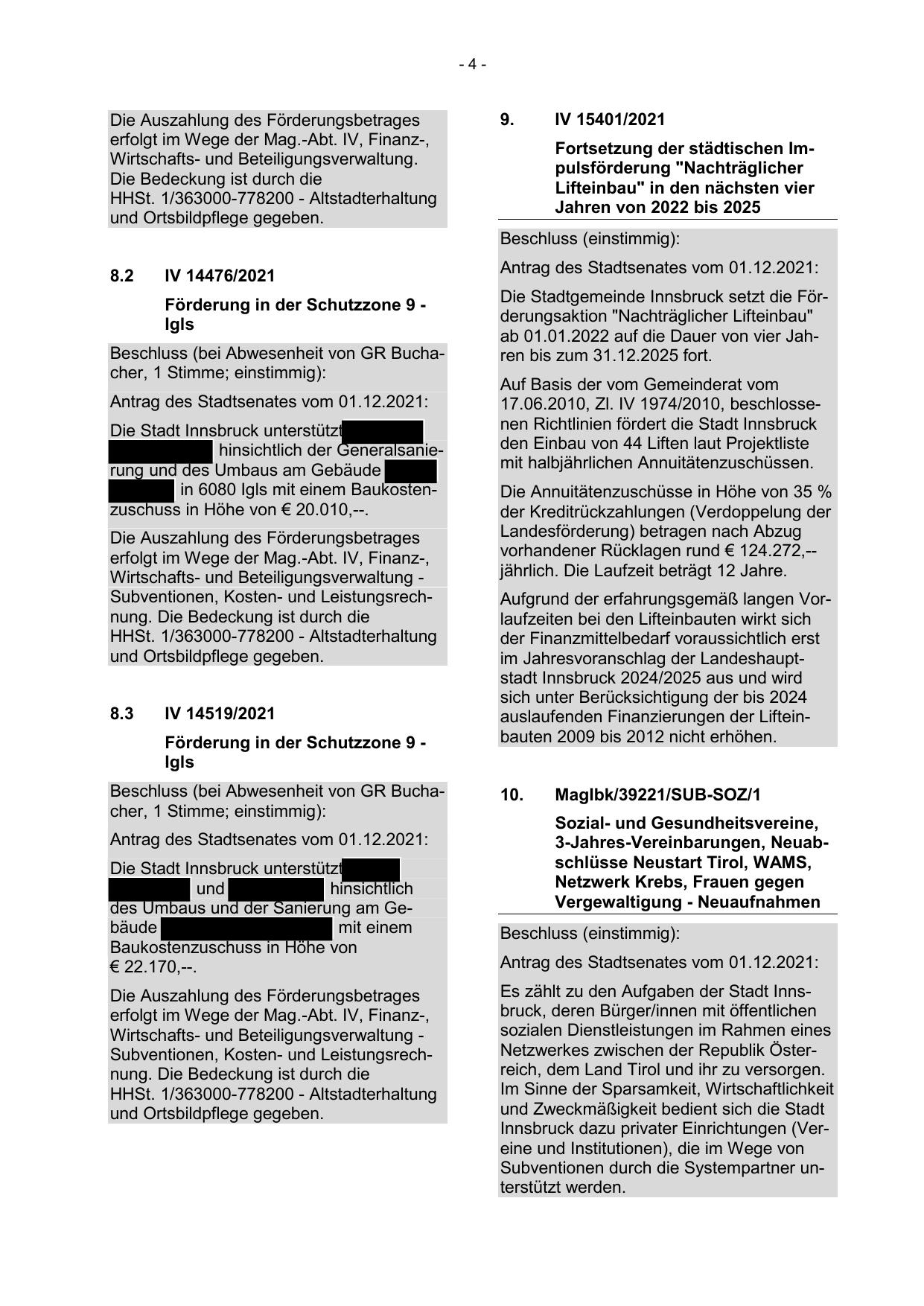 Beschluss (bei Abwesenheit von GR Buchacher, 1 Stimme; einstimmig):