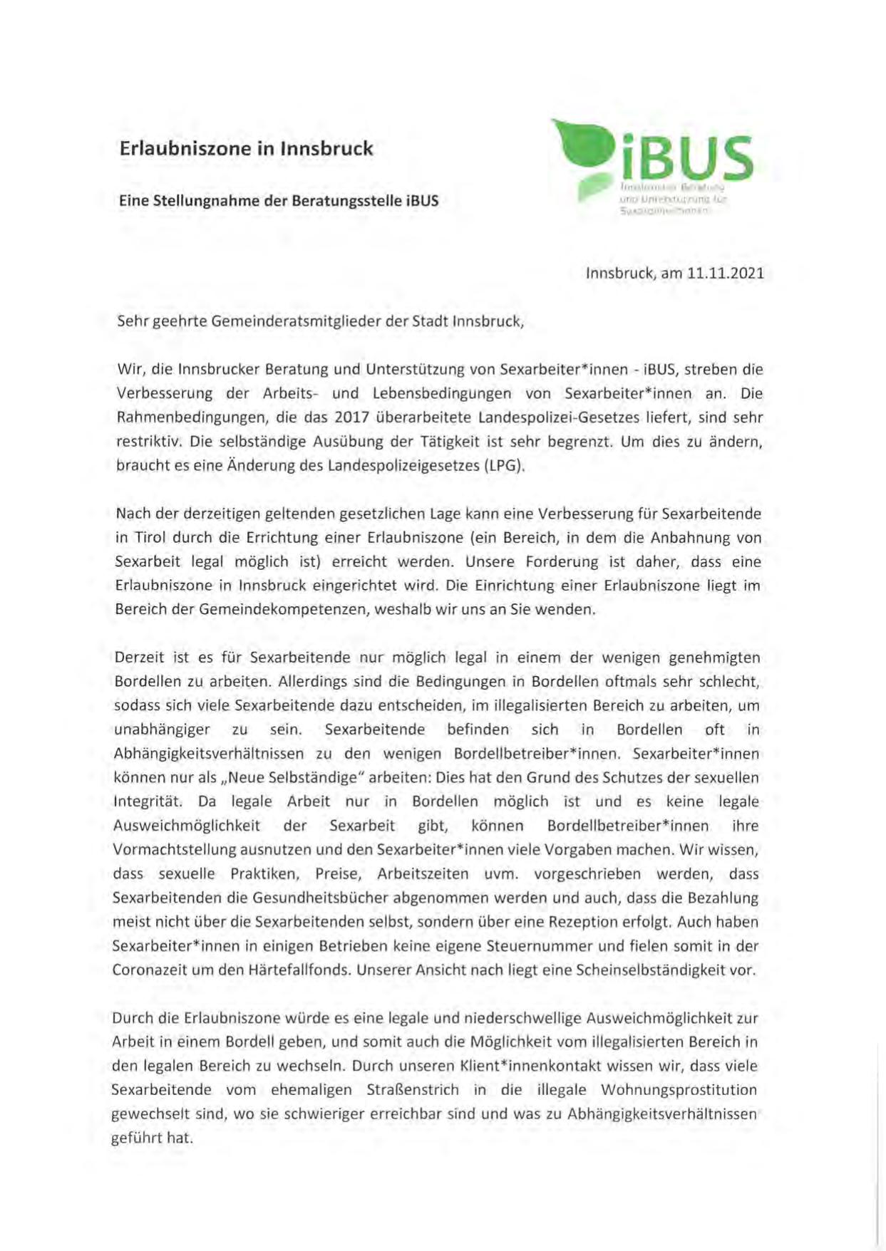 Wir, die lnnsbrucker Beratung und Unterstützung von Sexarbeiter*innen - iBUS, streben die