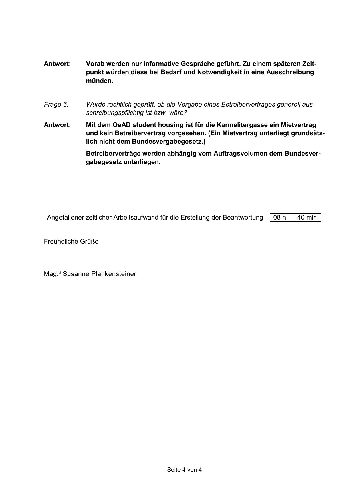 Angefallener zeitlicher Arbeitsaufwand für die Erstellung der Beantwortung