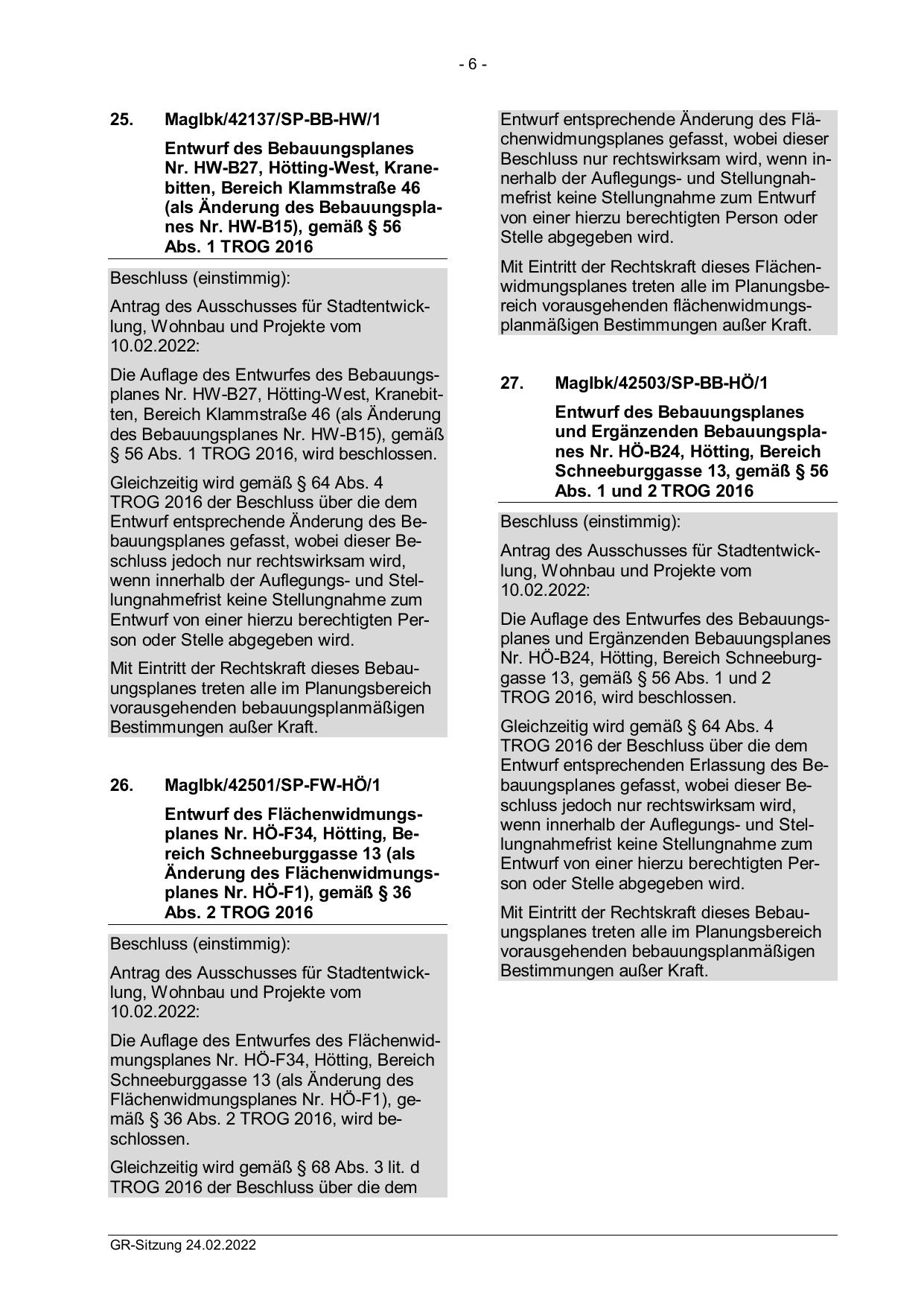 § 56 Abs. 1 TROG 2016, wird beschlossen.