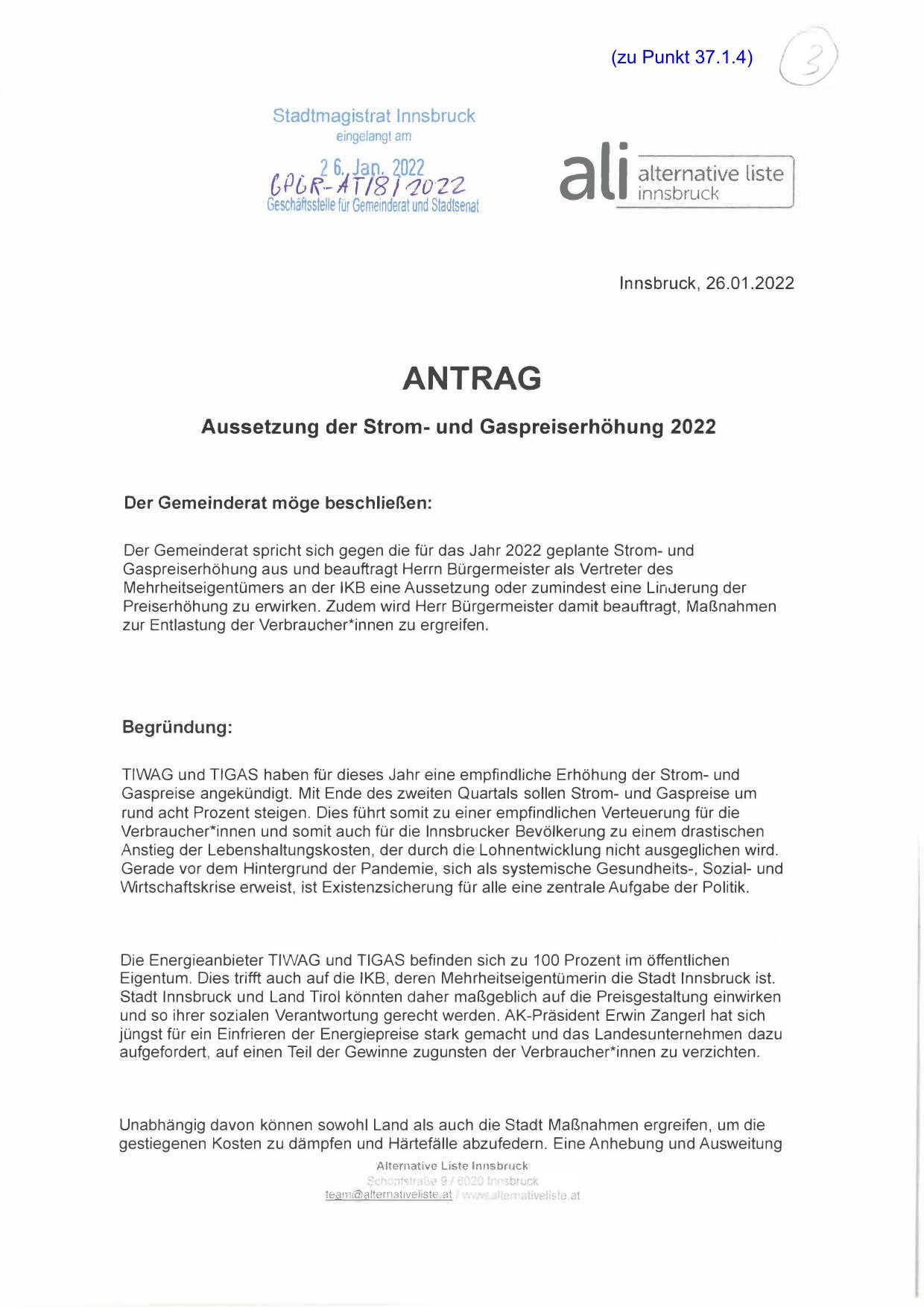 Verbraucher*innen und somit auch für die lnnsbrucker Bevölkerung zu einem drastischen