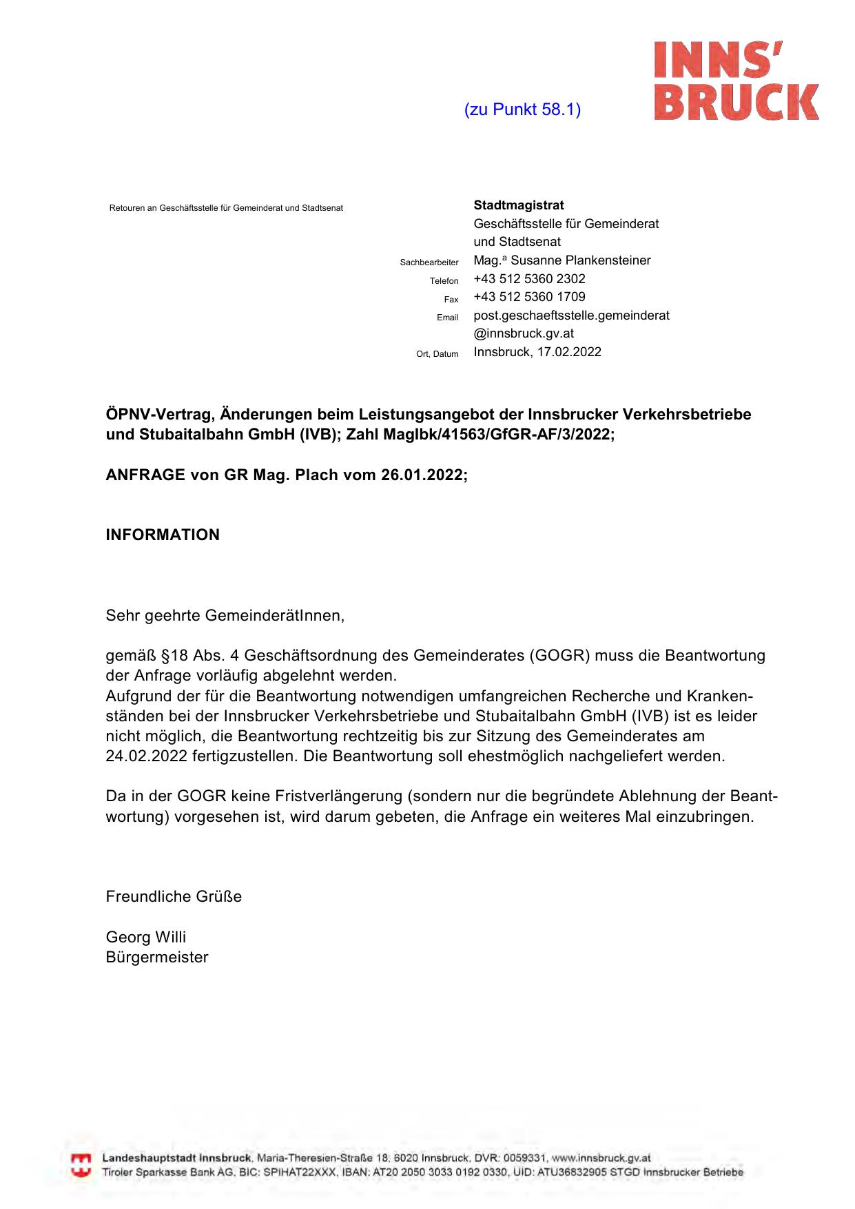 und Stubaitalbahn GmbH (IVB); Zahl MagIbk/41563/GfGR-AF/3/2022;