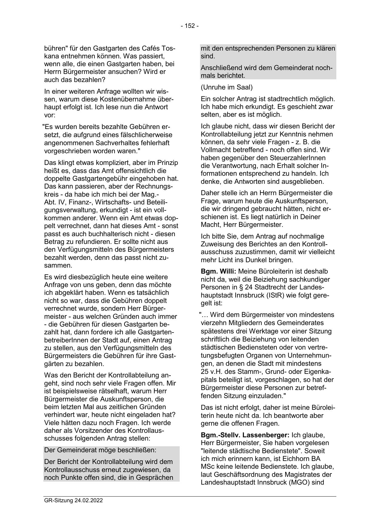 Personen in § 24 Stadtrecht der Landeshauptstadt Innsbruck (IStR) wie folgt geregelt ist: