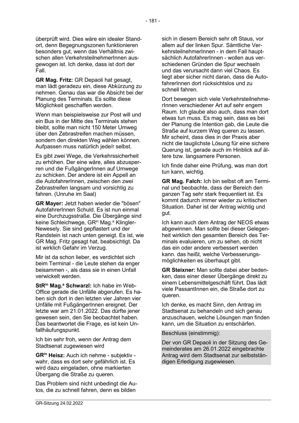 Der von GR Depaoli in der Sitzung des Gemeinderates am 26.01.2022 eingebrachte
