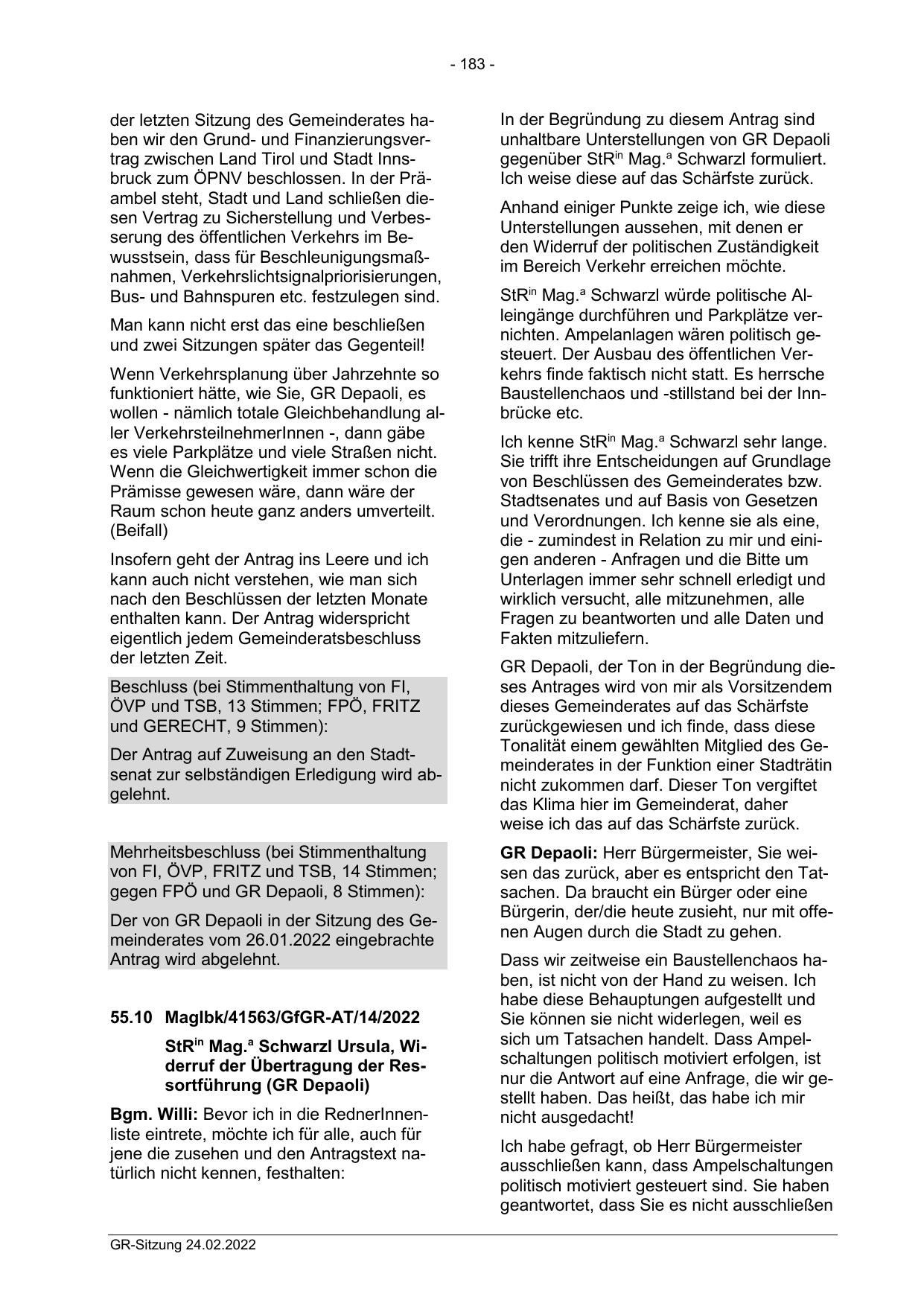 Der von GR Depaoli in der Sitzung des Gemeinderates vom 26.01.2022 eingebrachte