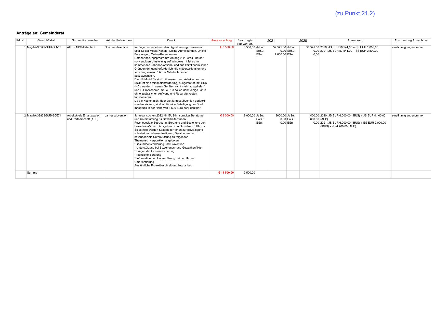 0,00 2021: JS EUR 6.000,00 (IBUS) + ES EUR 2.000,00