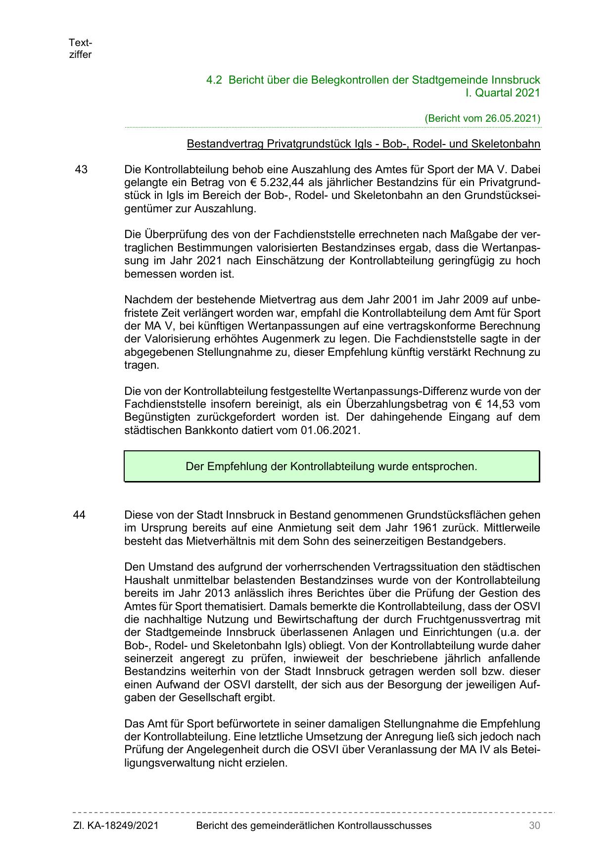 4.2 Bericht über die Belegkontrollen der Stadtgemeinde Innsbruck