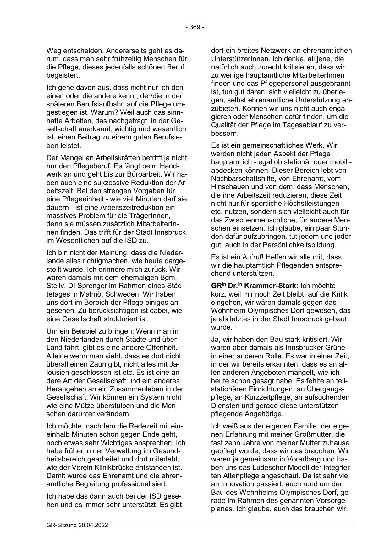 späteren Berufslaufbahn auf die Pflege umgestiegen ist. Warum? Weil auch das sinnhafte Arbeiten, das nachgefragt, in der Gesellschaft anerkannt, wichtig und wesentlich