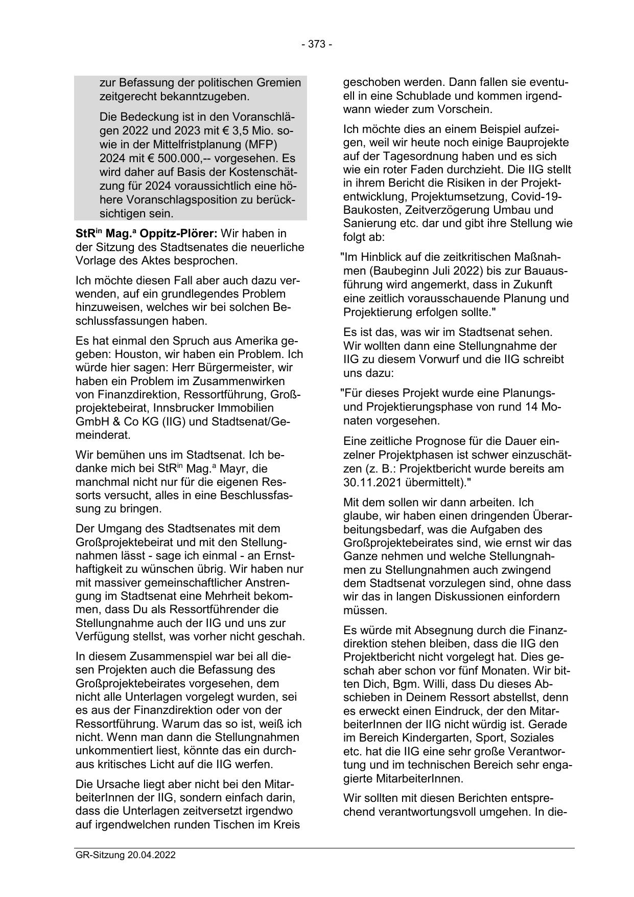 StRin Mag.a Oppitz-Plörer: Wir haben in