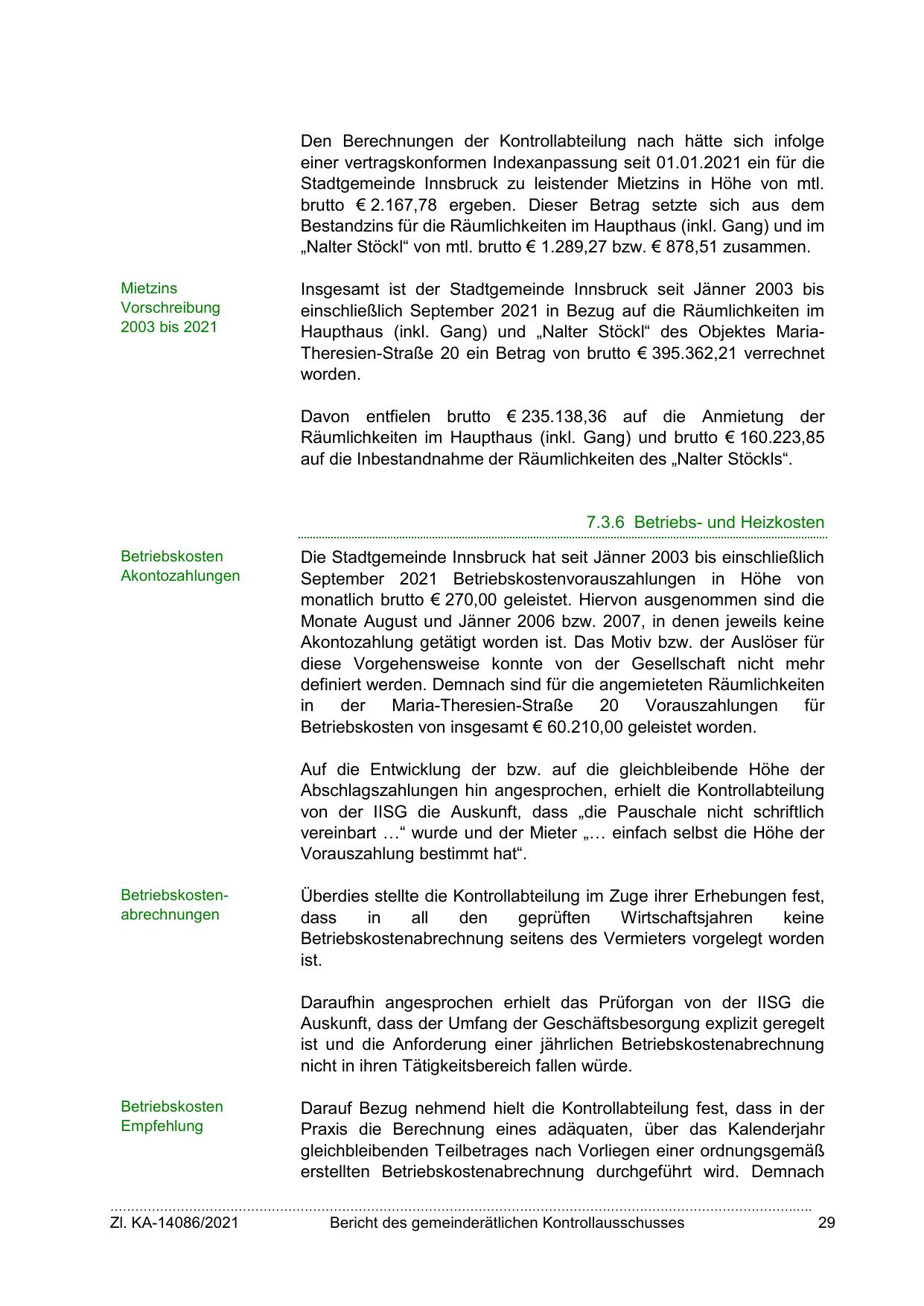 Die Stadtgemeinde Innsbruck hat seit Jänner 2003 bis einschließlich