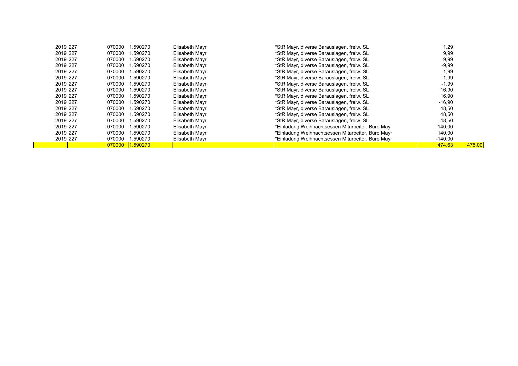 *StR Mayr, diverse Barauslagen, freiw. SL