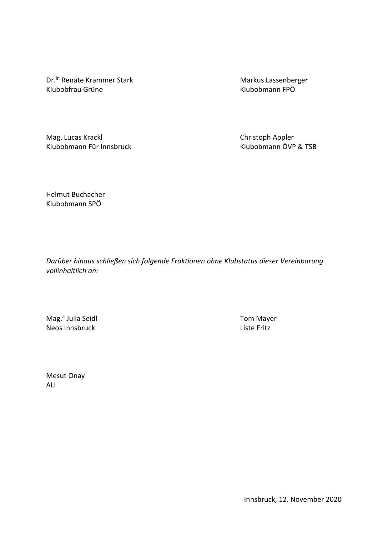 Darüber hinaus schließen sich folgende Fraktionen ohne Klubstatus dieser Vereinbarung