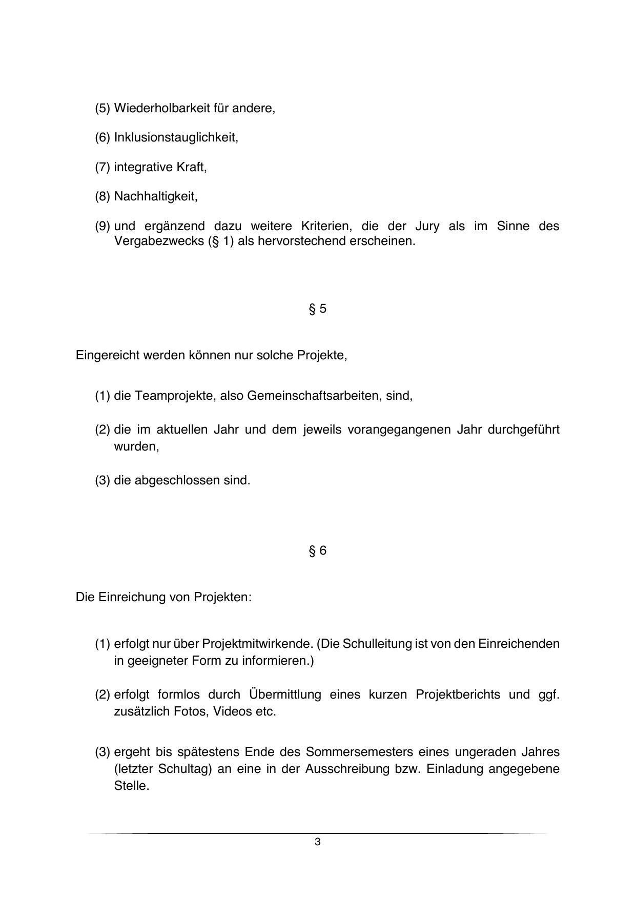 (9) und ergänzend dazu weitere Kriterien, die der Jury als im Sinne des