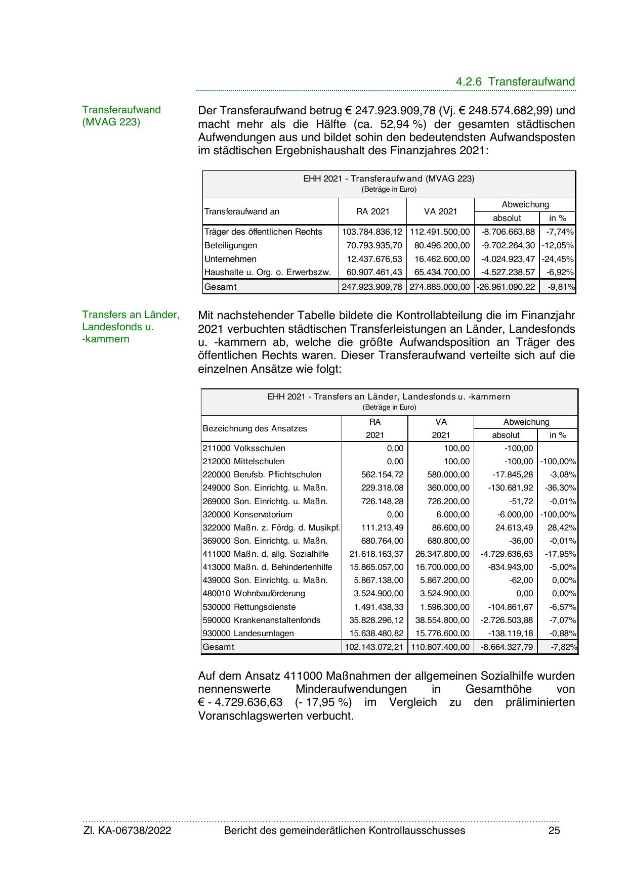 Der Transferaufwand betrug € 247.923.909,78 (Vj. € 248.574.682,99) und