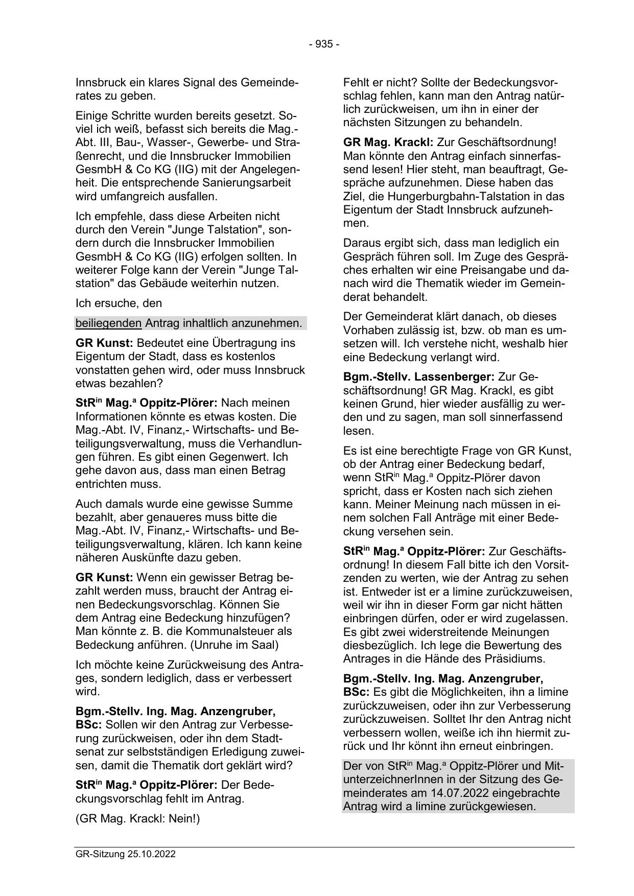 Der von StRin Mag.a Oppitz-Plörer und MitunterzeichnerInnen in der Sitzung des Gemeinderates am 14.07.2022 eingebrachte
