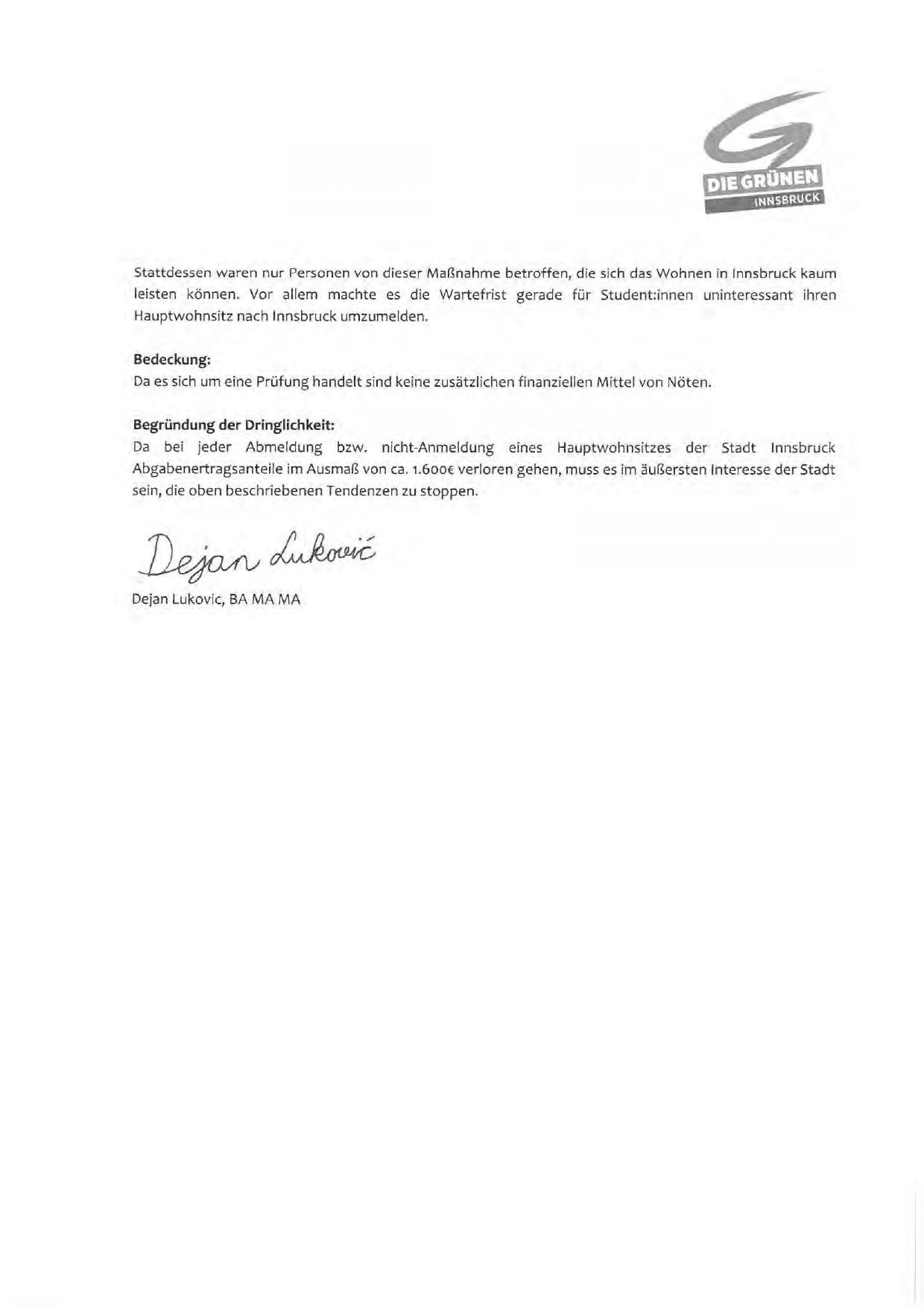 Hauptwohnsitz nach Innsbruck umzumelden.