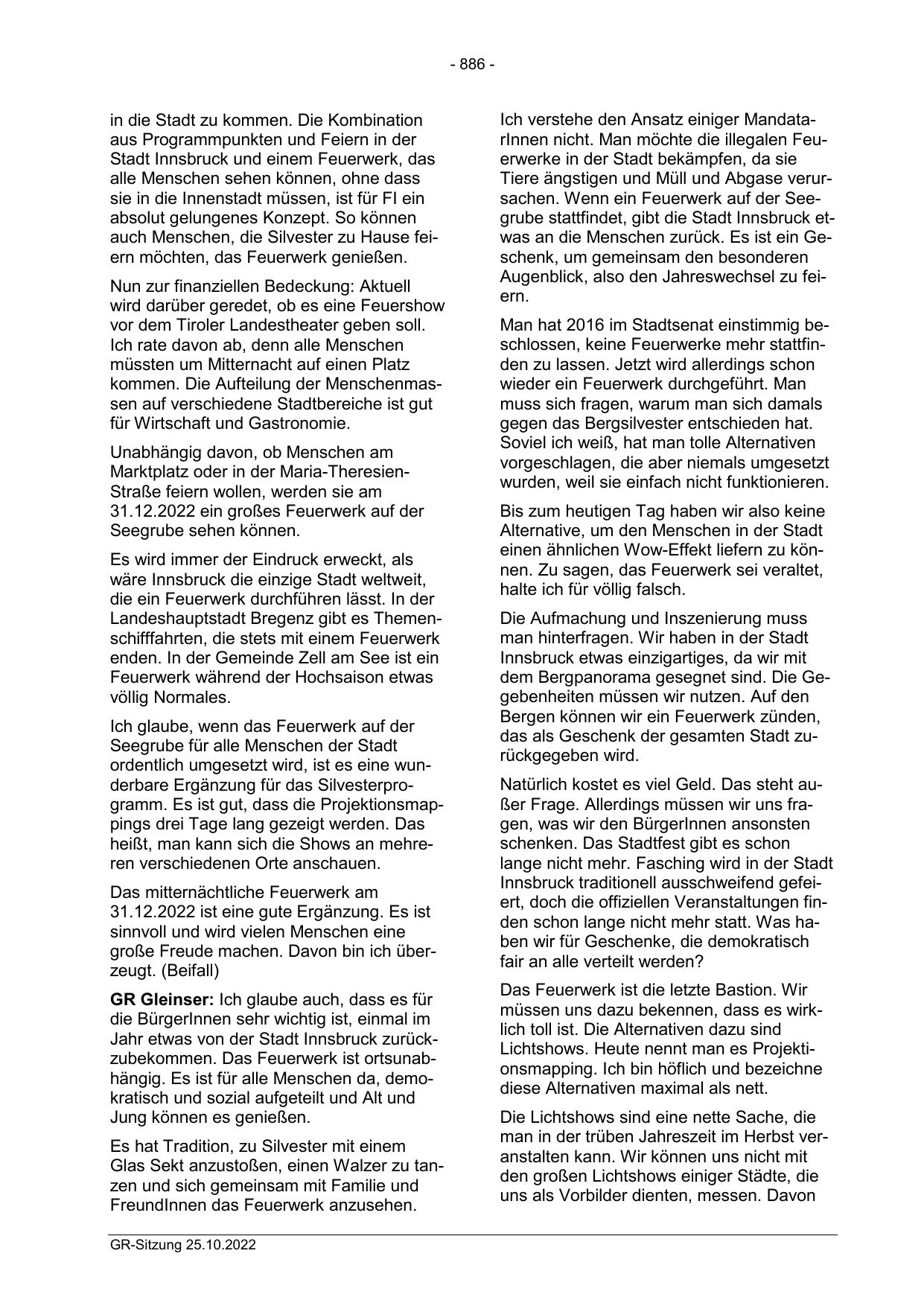 Jahr etwas von der Stadt Innsbruck zurückzubekommen. Das Feuerwerk ist ortsunabhängig. Es ist für alle Menschen da, demokratisch und sozial aufgeteilt und Alt und