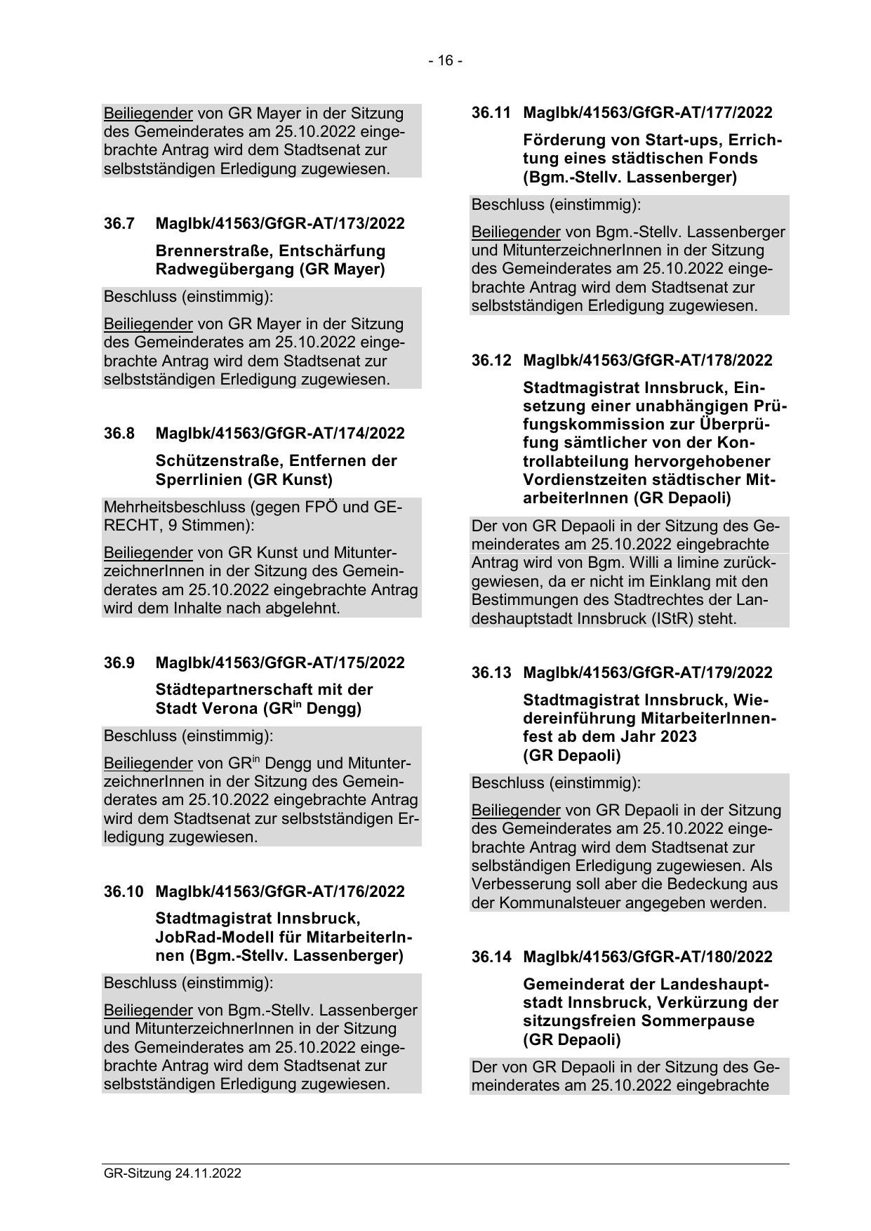 Der von GR Depaoli in der Sitzung des Gemeinderates am 25.10.2022 eingebrachte