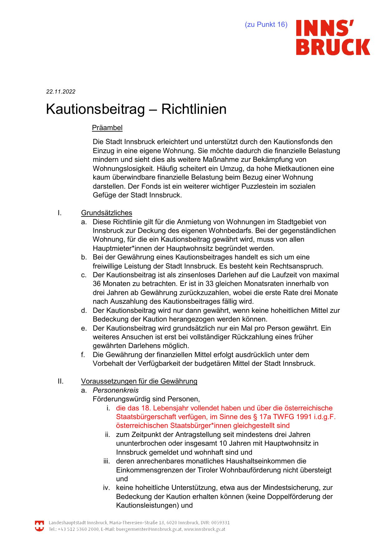 Die Stadt Innsbruck erleichtert und unterstützt durch den Kautionsfonds den