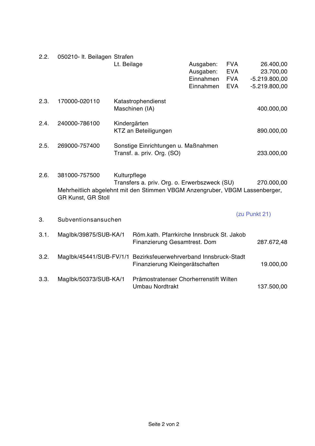 Mehrheitlich abgelehnt mit den Stimmen VBGM Anzengruber, VBGM Lassenberger,
