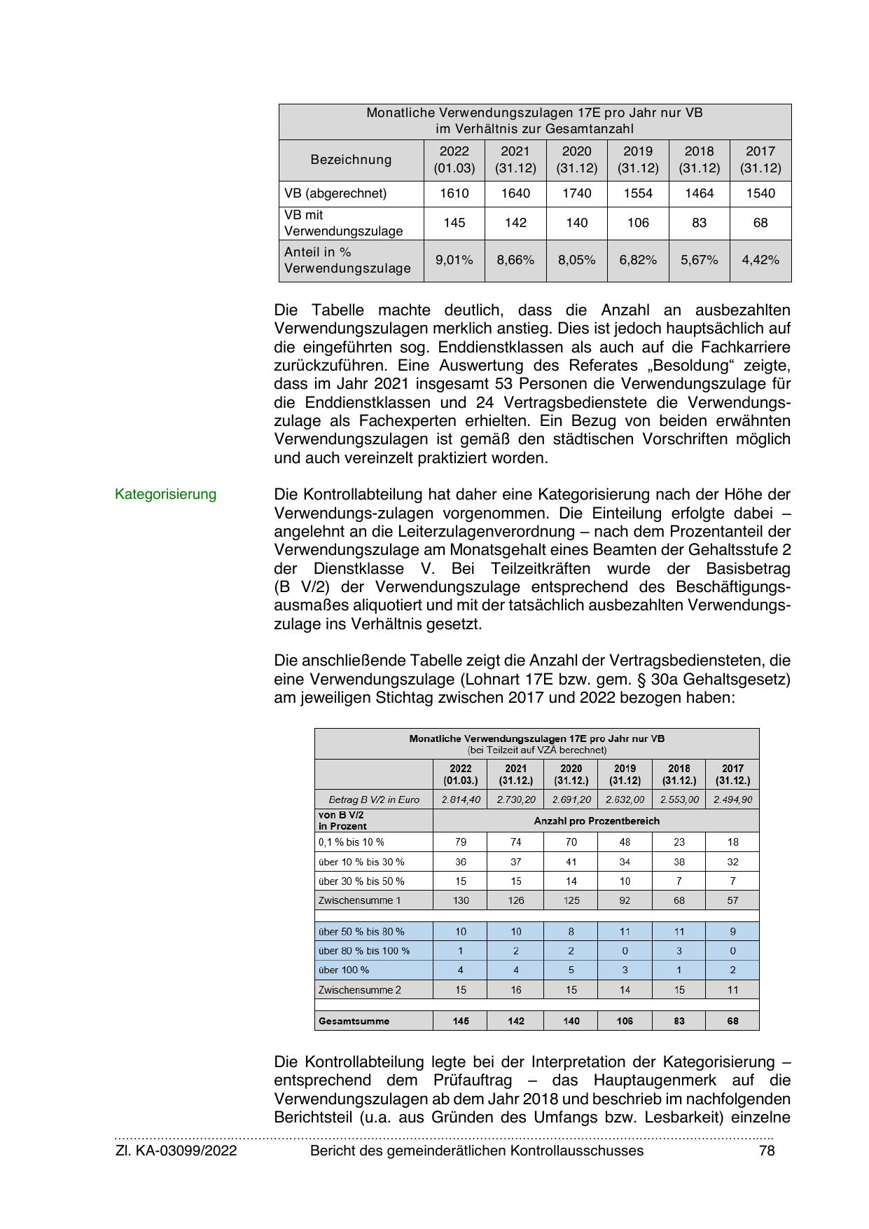 die Enddienstklassen und 24 Vertragsbedienstete die Verwendungszulage als Fachexperten erhielten. Ein Bezug von beiden erwähnten