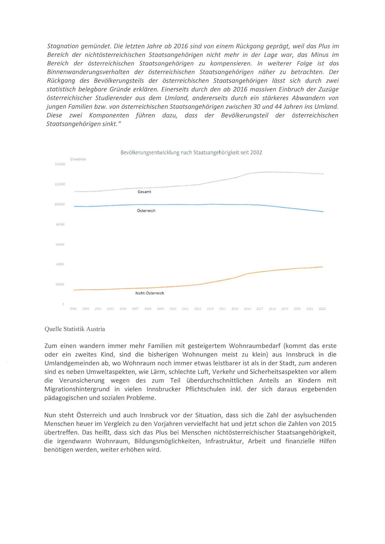 oder ein zweites Kind, sind die bisherigen Wohnungen meist zu klein) aus Innsbruck in die