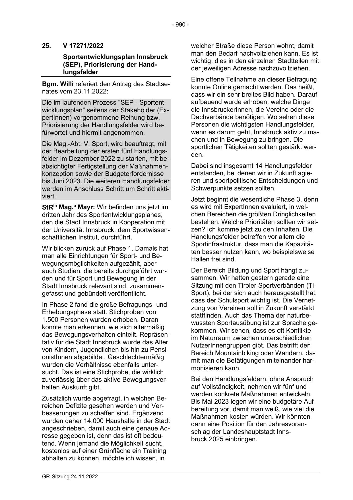 StR Mag. Mayr: Wir befinden uns jetzt im