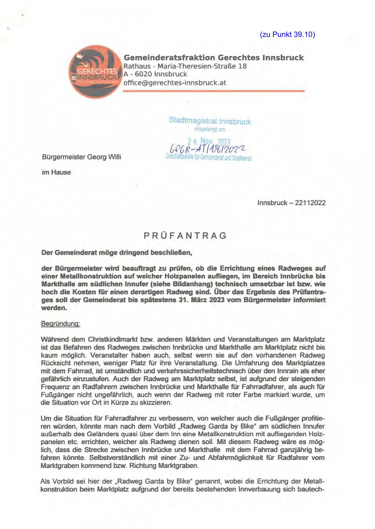 Gemeinderatsfraktion Gerechtes Innsbruck